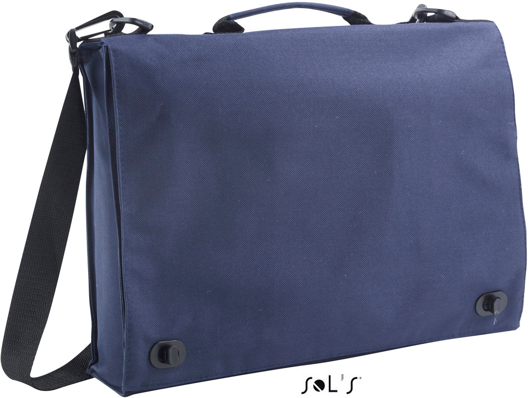 600D polyester Rýchle zapínanie hore, priehradka na karty a ceruzky, vnútorné vrecko na zips, držadlo z nylonu, odnímateľný nastaviteľný popruh z nylonu, rozmery: 37x27x7cm