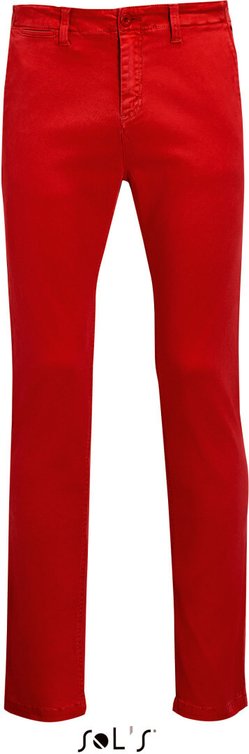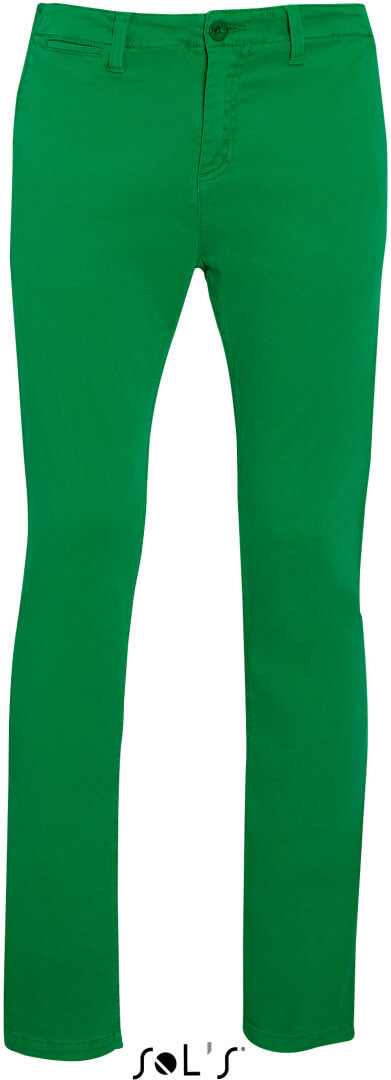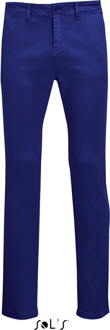 240g / m², 98% bavlna, 2% elastan zúžený strih, pružné vďaka elastanu, zapínanie na zips, pevný pás s pútkami na opasok, 2 bočné vrecká, zadné vrecká, francúzske veľkosti, nutná orientácia podľa tabuliek