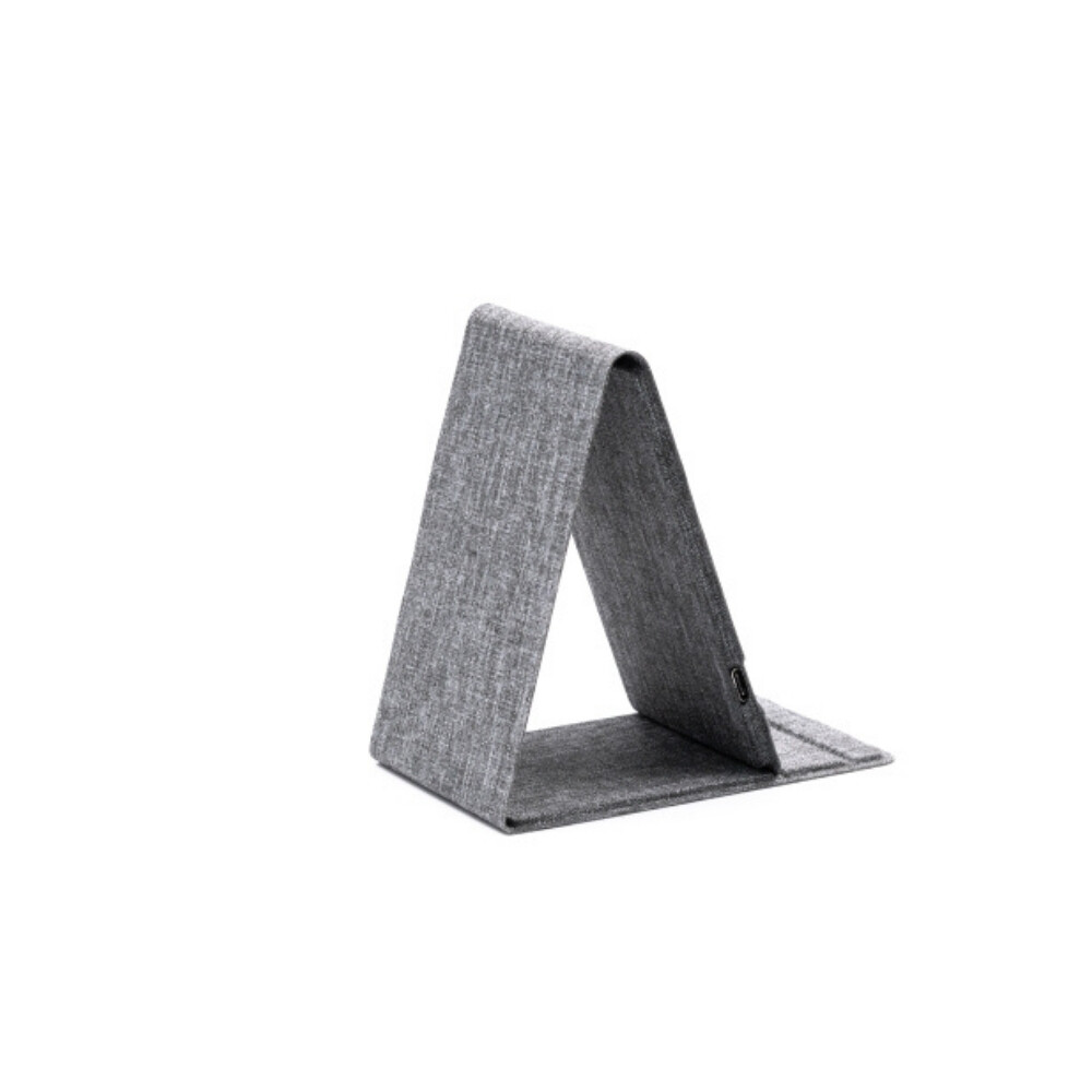 Skladací stojanček BrandCharger na telefón alebo tablet s funkciou 15W bezdrôtového nabíjania. Je vyrobený z RPET a obsahuje certifikáciu podľa štandardu Recycled Claim Standard (RCS). Kompatibilný s MagSafe a obsahuje silikónovú nálepku MagSafe. Rozmery: 12 × 7,5 × 12 cm. Cena nezahŕňa recyklačný poplatok.