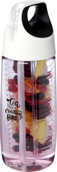 Jednostenná športová fľaša vyrobená z recyklovaného PET materiálu s ľahko použiteľným ergonomickým dizajnom a viečkom odolným proti vyliatiu. Odklápací vršok vám umožní pridať do nápoja vaše obľúbené ovocie alebo bylinky. Neobsahuje BPA. Objem je 700 ml.