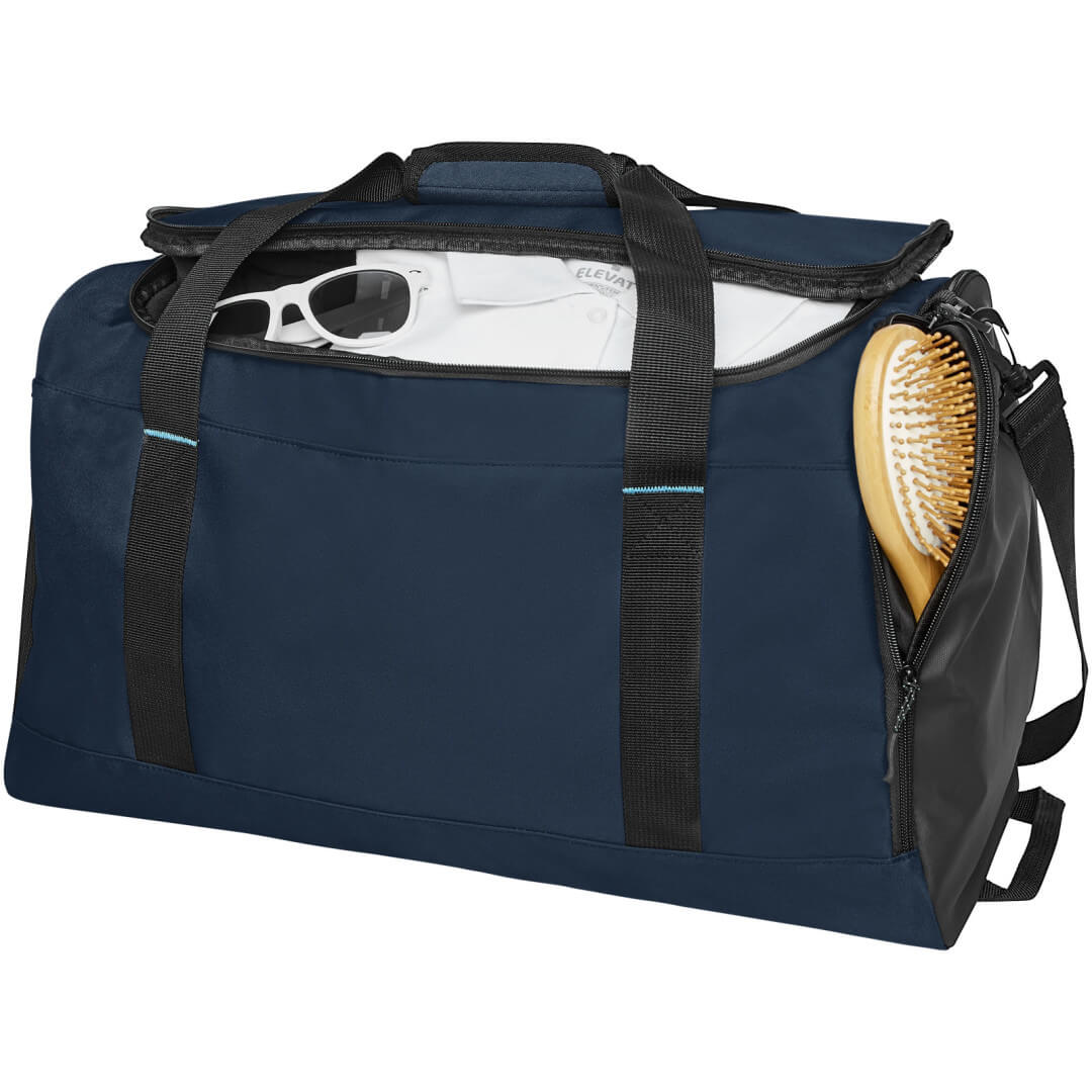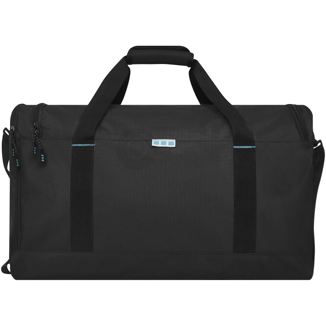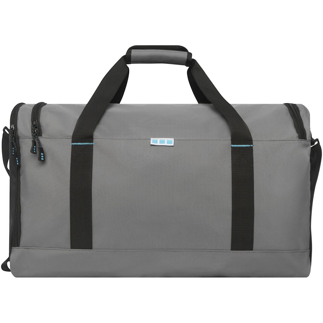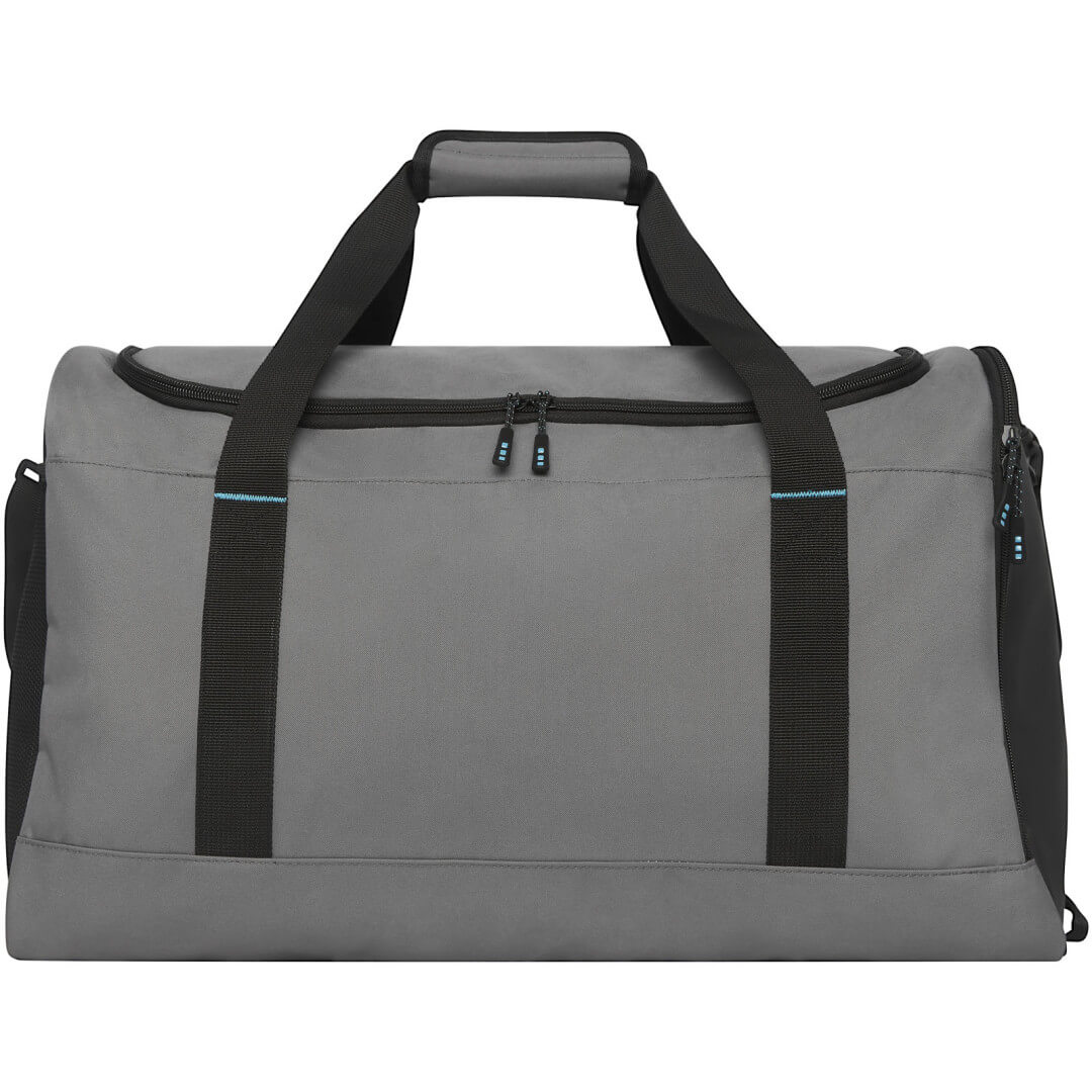 Udržateľná športová taška RPET s certifikáciou GRS vyrobená zo 40% z recyklovaných materiálov. Obsahuje veľkú hlavnú priehradku na zips, zosilnený základný panel, bočné sieťové vrecko a rozšíriteľné vrecko na zips odolné proti vode. Dodáva sa s malým vnútorným vreckom na zips pre usporiadanie, odnímateľným a čalúneným ramenným popruhom, rukoväťou s polstrovaným uzáverom na suchý zips a extra rukoväťou na pravej spodnej strane.