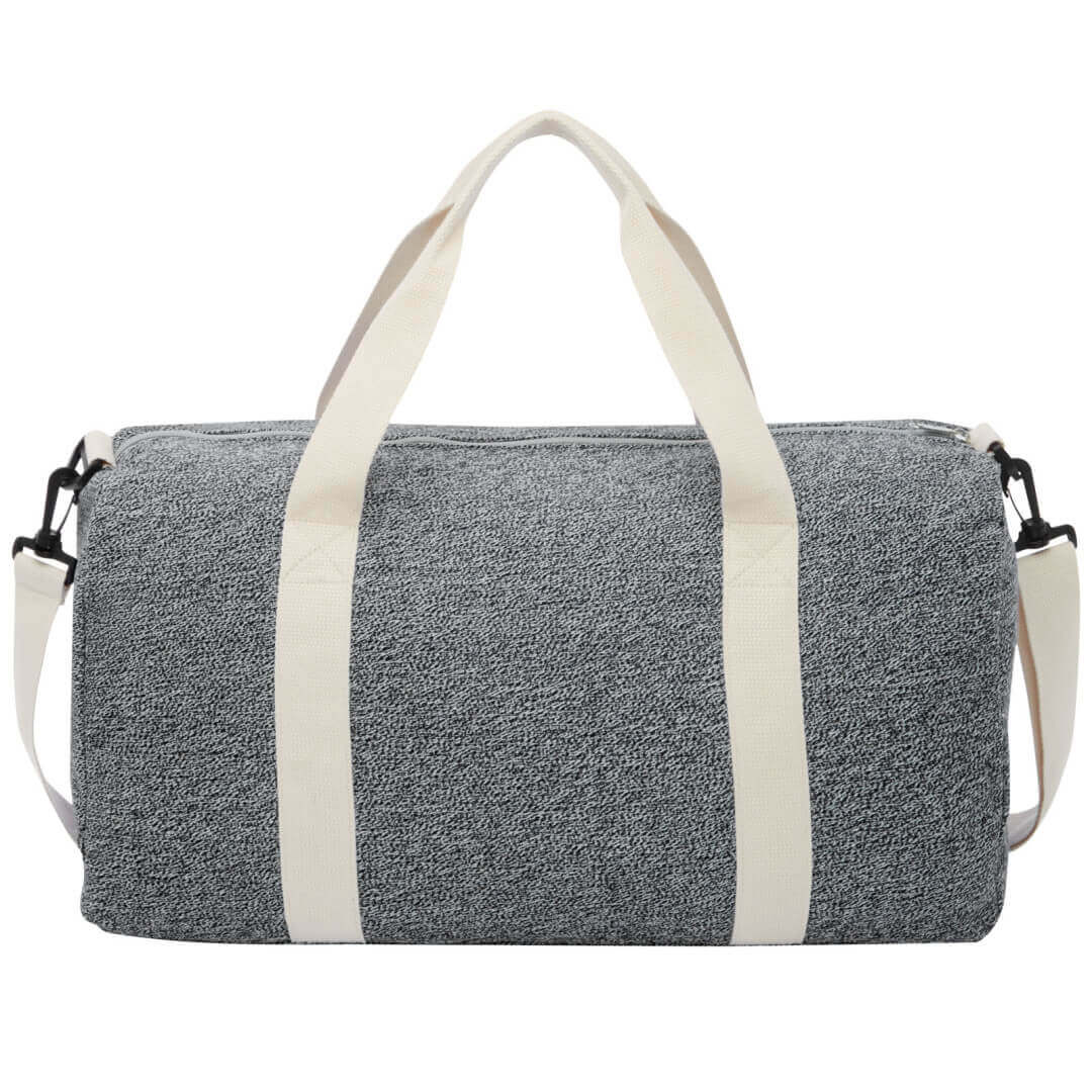 Športová taška vyrobená zo zmesi recyklovanej bavlny a polyesteru s nastaviteľným ramenným popruhom. Recyklovaná bavlna pochádza z výrobného odpadu textilných tovární, vznikajúceho počas procesu rezania. Látka z materiálov podobných farieb, ktorá nevyžaduje ďalšie farbenie. Vzhľadom na vlastnosti recyklovanej bavlny môže dôjsť k miernym zmenám farby. Táto vlastnosť výrazne prispieva k autentickejšiemu vzhľadu.