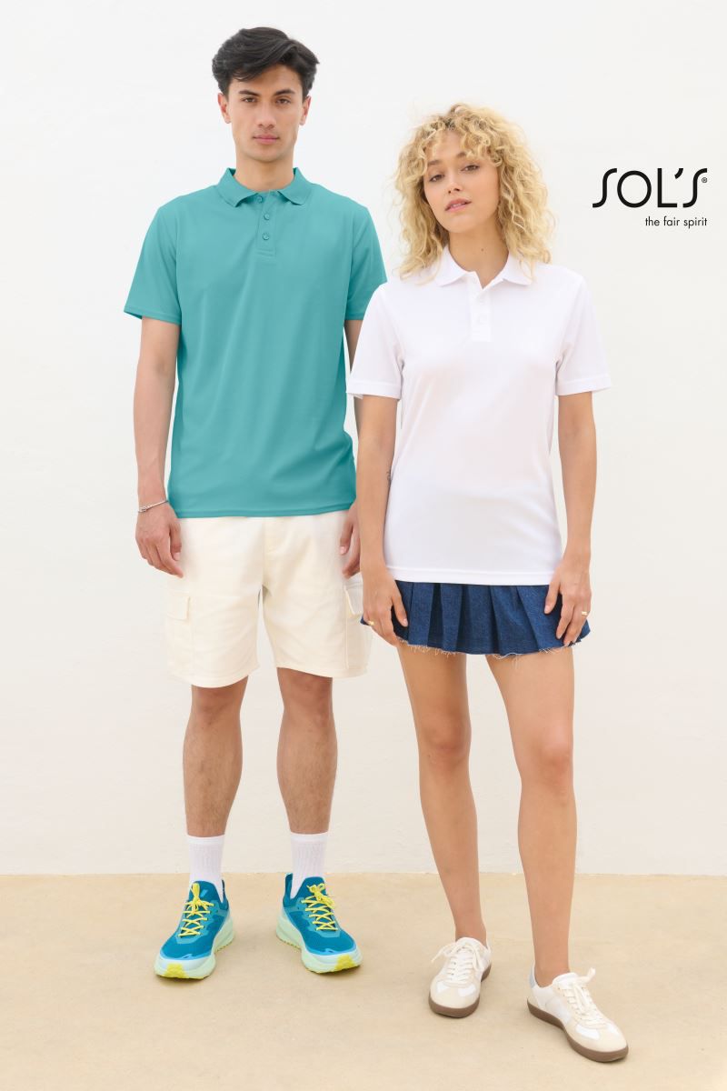 Rebrovaný pletený golier, zosilnená gombíková léga s 3 gombíkmi tón v tóne, krčná lemovka, vhodné pre sublimačnú tlač, štítok TearAway, prateľné na 60 °, nemožno sušiť v sušičke, nemožno chemicky čistiť.
