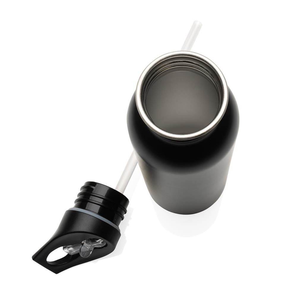 Fľaša sa športovým viečkom prispôsobeným pre rýchle dúškami vody pri cvičení či na cestách. Ideálna veľkosť, nízka hmotnosť a vysoká odolnosť vďaka použitiu kvalitnej nehrdzavejúcej ocele 18/8. Doporučené len pre studené nápoje. Objem: 710ml.