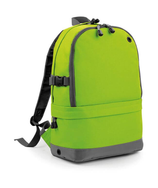 ·100% polyester (600D/420D) ·polstrované nastaviteľné ramenné popruhy ·madlo ·vystužený chrbtový panel ·dvojkomorová konštrukcia ·polstrovaná priehradka pre laptop, notebooku až do 15,6 ·vrecko na MP3 prehrávač a slúchadlový port ·sekcia s organizérom ·elastické pútko na fľašu ·autentické kovové vetracie krúžky ·objem: 18 l ·rozmery: 44 x 31 x 16 cm ·maximálna výšivka: 22 (flat bed hoop) ·maximálny priestor na potlač: 20 x 18 cm
