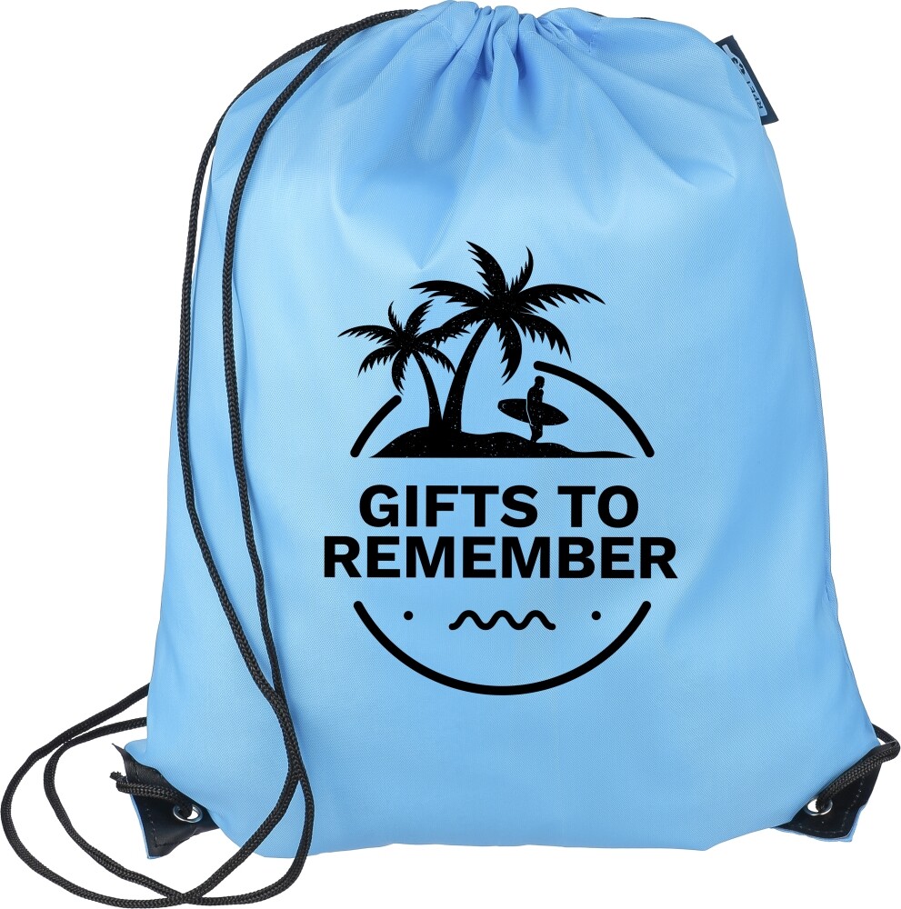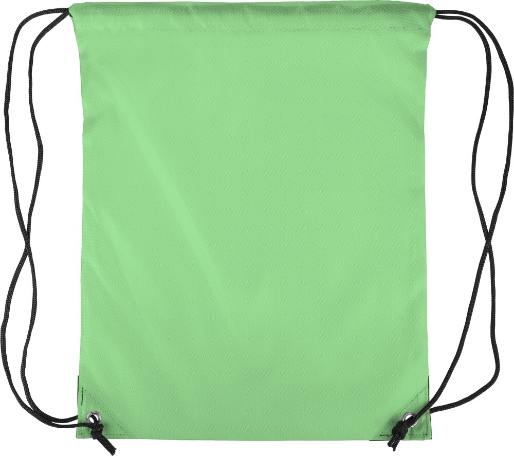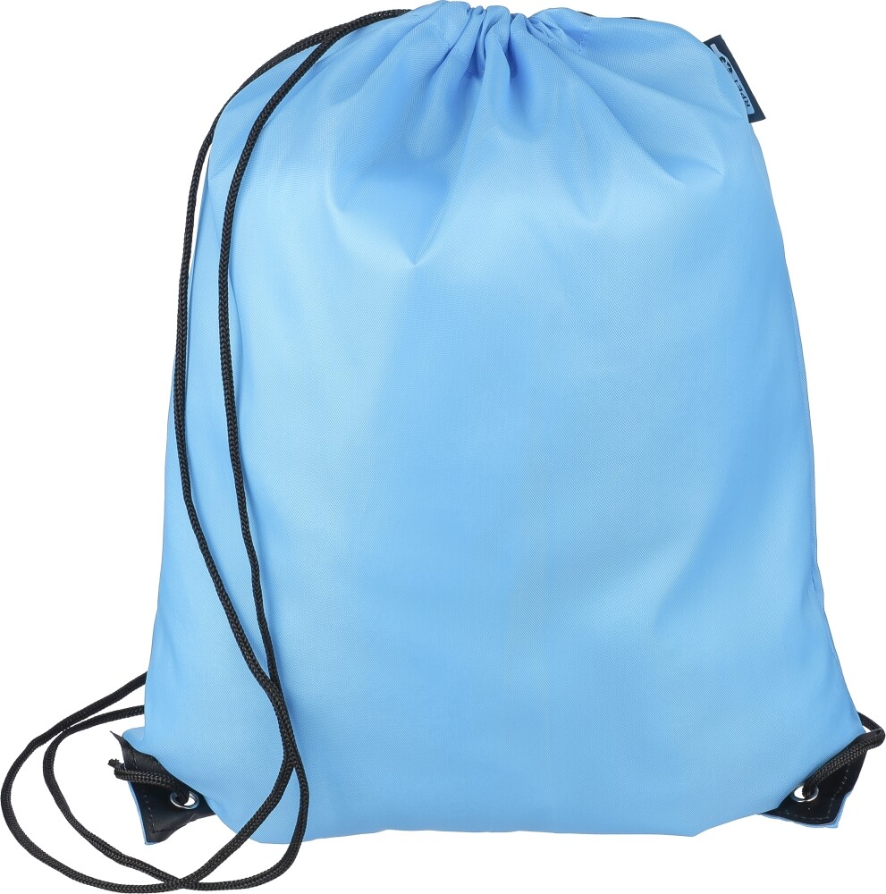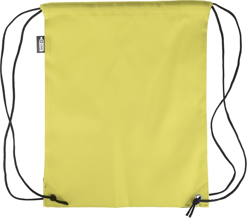 Sťahovací batoh z polyesteru 210D s dvoma čiernymi PU rohmi na prednej strane a vnútorným prešitím. Má čiernu nylonovú šnúrku na každej strane, zapínanie na sťahovaciu šnúrku a jednu vnútornú priehradku. Objem: 5 l. Nosnosť: 7 kg. Rozmery: 34 x 0,1 x 42 cm