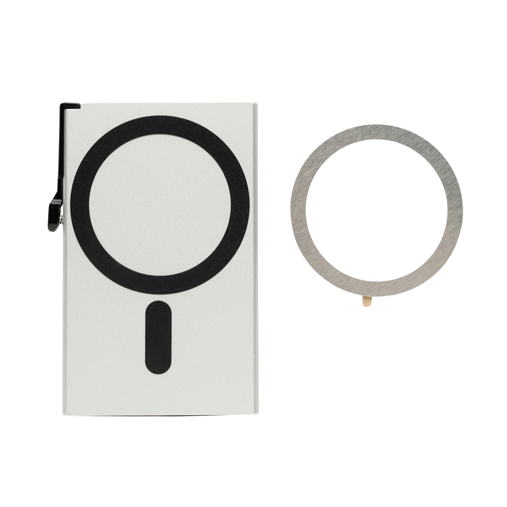 Náš hliníkový RFID magnetický držiak na karty a na telefón chráni vaše karty pred digitálnou krádežou a pritom sa ľahko pripevní na váš telefón. Ľahký, kompaktný a navrhnutý s inteligentným magnetickým uchytením. Pojme až 7 plochých alebo 5 embosovaných kariet, takže vaše základné veci budete mať vždy poruke. Zabudovaný magnetický krúžok pevne pripevní držiak k akémukoľvek smartfónu alebo magnetickému puzdru. Pre používateľov Androidu je priložený dodatočný samolepiaci magnetický krúžok, ktorý zaisťuje univerzálnu kompatibilitu.Štýl, bezpečnosť a pohodlie – v jednom produkte.Blokovanie NFC (13,56 MHz) pre digitálnu ochranu.