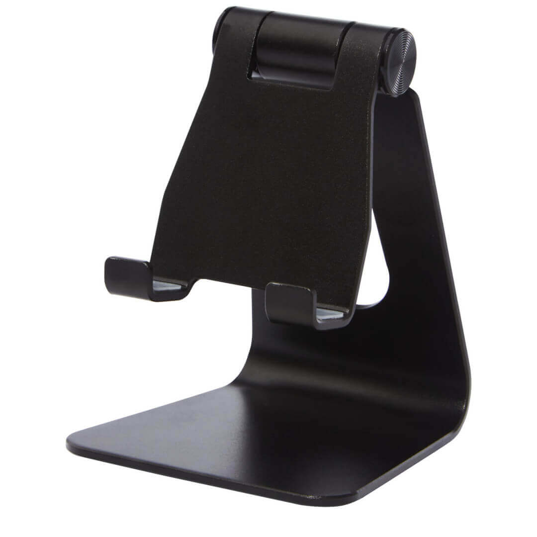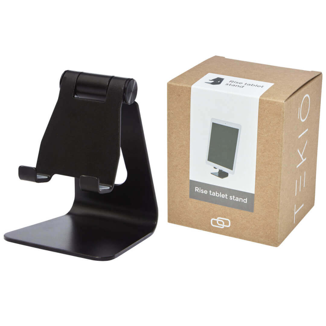 Kompaktný hliníkový držiak na tablet. Uhol pohľadu je možné upraviť tak, aby vyhovoval všetkým potrebám, čo z neho robí perfektné príslušenstvo pre konferenčné hovory, vysielanie, živé prenosy alebo jednoducho na sledovanie filmu. Spodná časť má protišmykový materiál, ktorý zabraňuje jeho pohybu. Dodávané v prémiovej krabičke z kraftového papiera s farebnou samolepkou.