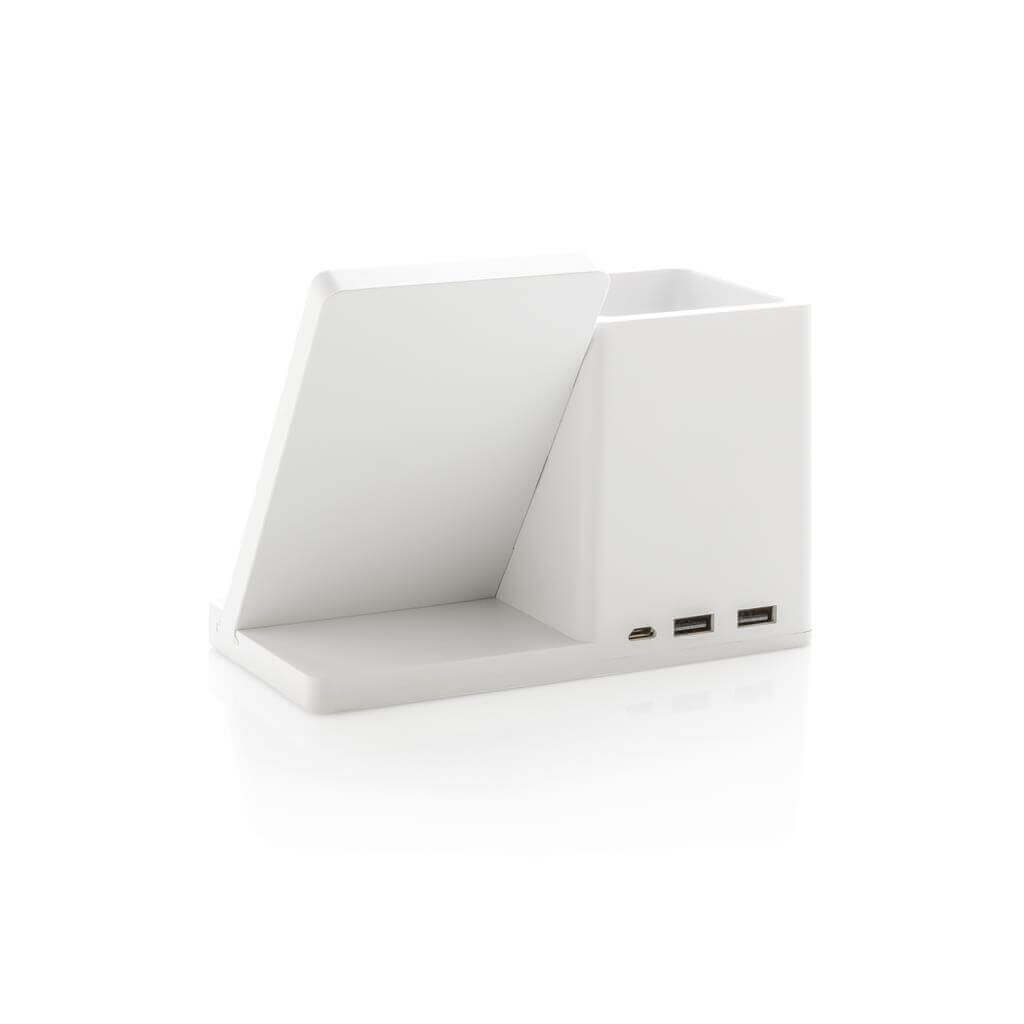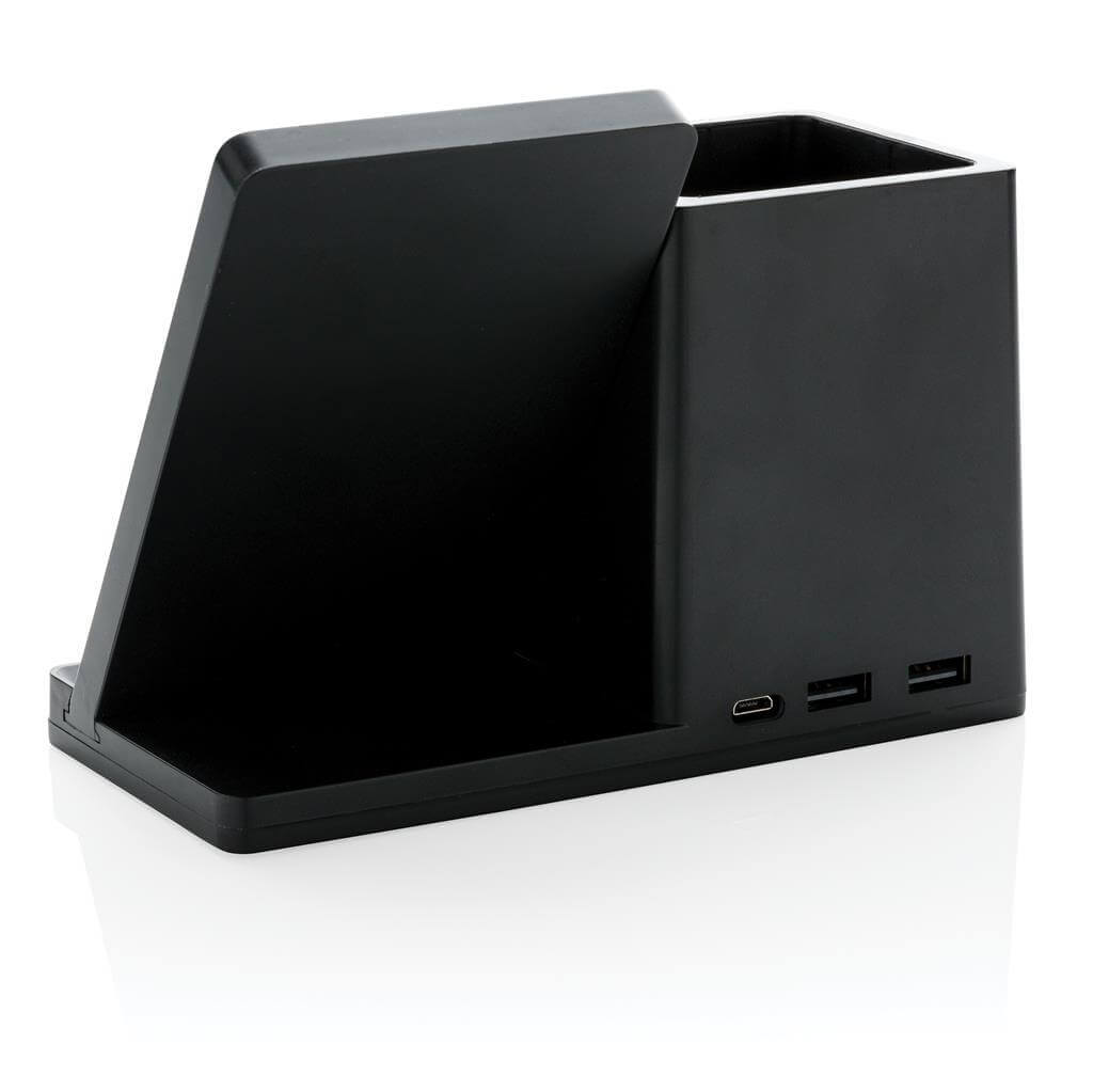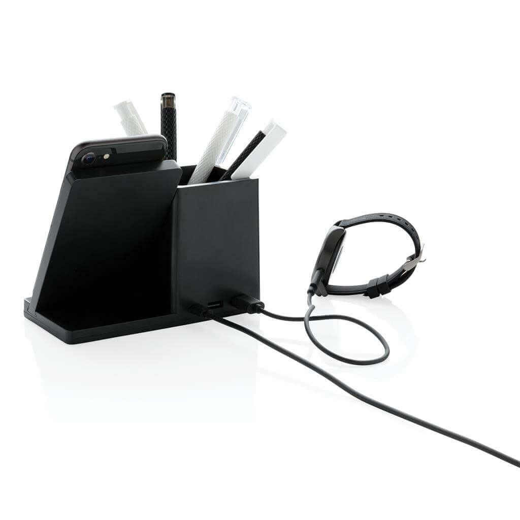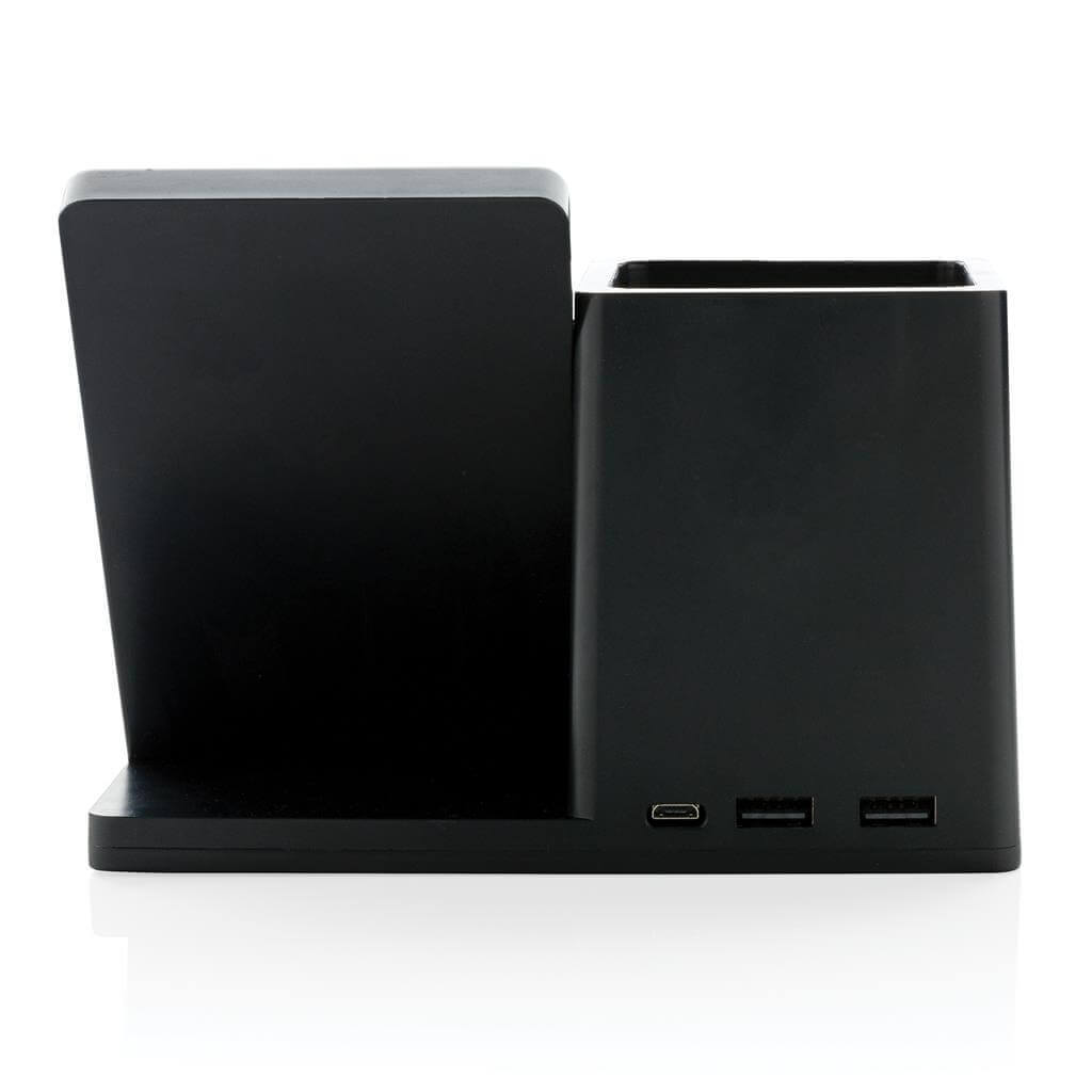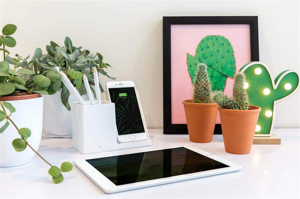 Štýlový stojanček na písacie potreby či iné drobnosti s bezdrôtovou nabíjačkou vyrobený z ABS a prírodného bambusu. Geniálny vychytávka, ktorá povýši praktickosť vášho pracovného stola na kompletne novú úroveň. Tie najčastejšie používané veci budete mať stále po ruke a na stole zaručene poriadok. Rýchlosť nabíjania 5W. Kompatibilné so všetkými zariadeniami podporujúcimi QI, ako sú najnovšie generácie Android, iPhone 8, 8S a X. Vrátane 1,5 m dlhého micro USB kábla.