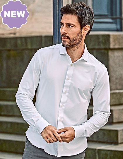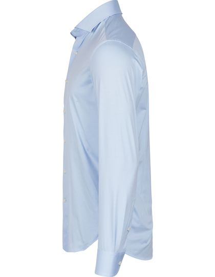 Predzrážaná bavlna, Pletený jednoduchý džersej. Štvorsmerný streč. Vypasovaný strih. Široký golier. Manžeta moderného tvaru. S odvodom vlhkosti. Rýchloschnúci. Jednoduché pranie a starostlivosť.