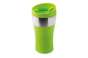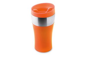70 ks - dvojstenný termo hrnček z nehrdzavejúcej ocele a PP materiálu. Objem 350 ml.