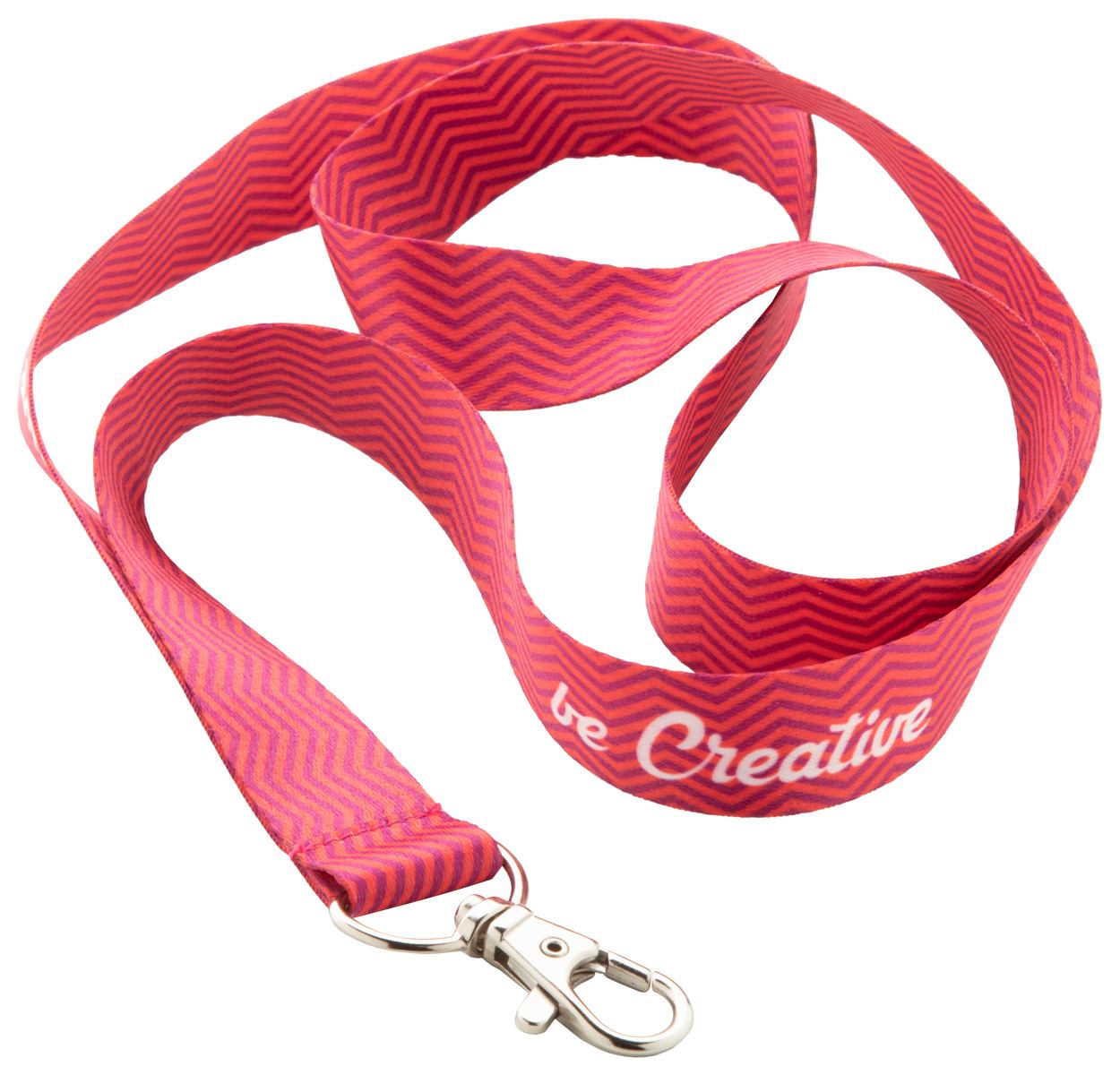 Sublimačné šnúrky s obojstrannou potlačou a kovovou karabínkou. Šírka šnúrky 20 mm.