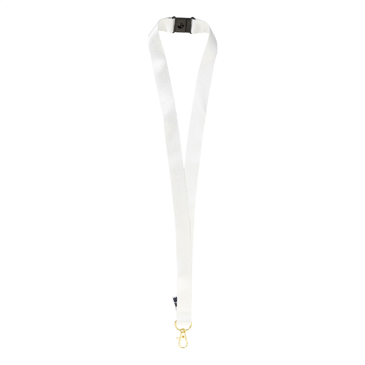 Lanyard na zákazku z RPET s farebnou kovovou karabínou a bezpečnostnou sponou. S obojstranne potlačenou grafikou, cena nezahŕňa tlačovú prípravu. Min. mn.: 100 ks. New. Be Creative