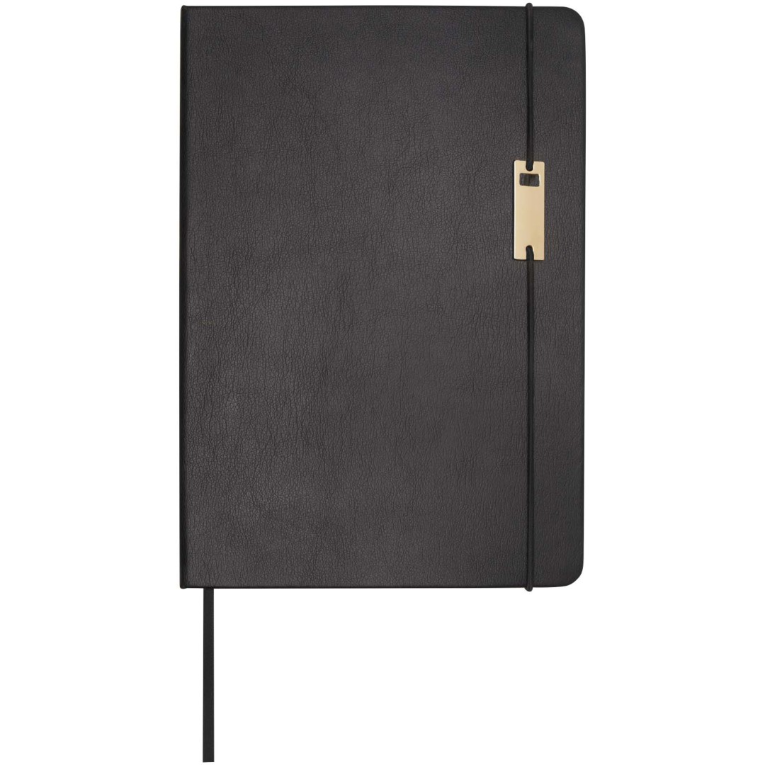 Súprava Legato elegantne kombinuje zápisník formátu A5 a guličkové roller pero. Pero má hornú časť tela z recyklovanej mosadze so zlatým chrómovaným povrchom, spodnú časť tela s čiernohnedým nástrekom, kovové zlaté chrómované doplnky a logo LUXE na stredovom krúžku. Farba atramentu: Čierna. Dĺžka písania: 400 metrov. Rozmer hrotu: 0,7 mm. Zápisník má 80 listov linkovaného papiera s gramážou 80 g/m², dosky z recyklovaného plastu, elastické zatváranie, stuhu ako záložku a zhrňovacie vrecko. Zlatý chrómovaný kovový doplnok na elastickom zatváraní. Dodáva sa v darčekovej krabičke z recyklovanej lepenky.