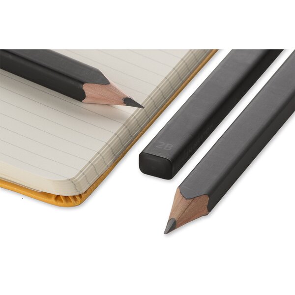 Súprava troch čiernych grafitových dizajnových ceruziek. Moderný hranatý tvar so zaoblenými rohmi, vyrobené z cédrového dreva, vysoko kvalitná 3mm tuha tvrdosťi 2B = 2 ks a HB =1 ks.