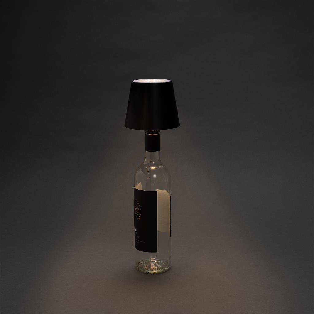 Vďaka tejto dobíjacej USB lampe premeníte akúkoľvek prázdnu fľašu na módny kúsok. Jednoducho vložte lampu do starej fľaše na víno alebo liehovinu a vytvoríte tak štýlovú stolnú lampu. Vyrobené z recyklovaného ABS plastu. Lampa je dodávaná s integrovanou 1200 mAh batériou triedy A, ktorá podporuje nabitie až na 4 hodiny a je možné ju znovu nabiť v priebehu 2 hodín. RCS certifikácia zaisťuje garanciu použitia recyklovaného materiálu vďaka transparentnému prehľadu nad dodávateľským reťazcom. Celkový podiel recyklátu podľa váhy produktu: 32 %. Súčasťou balenia je nabíjací kábel z recyklovaného TPE. Balené v papierovom obale.