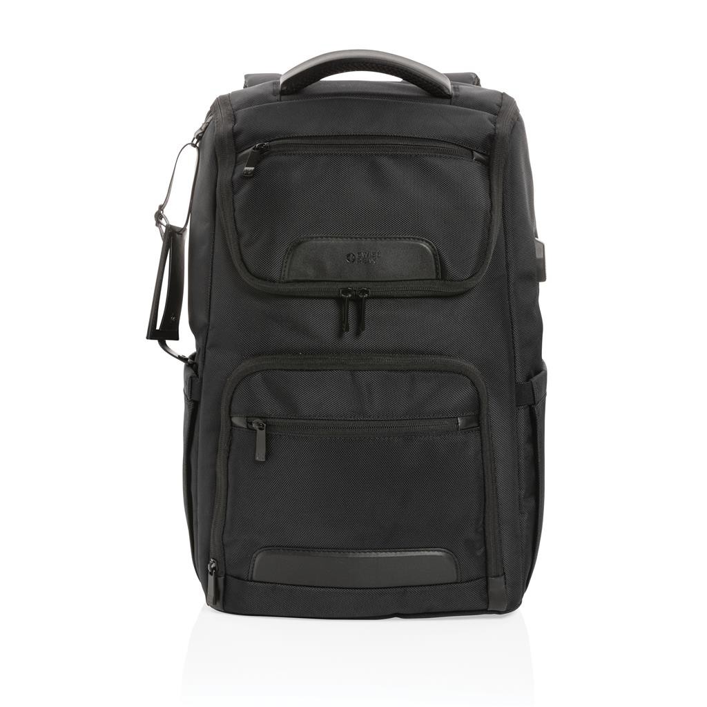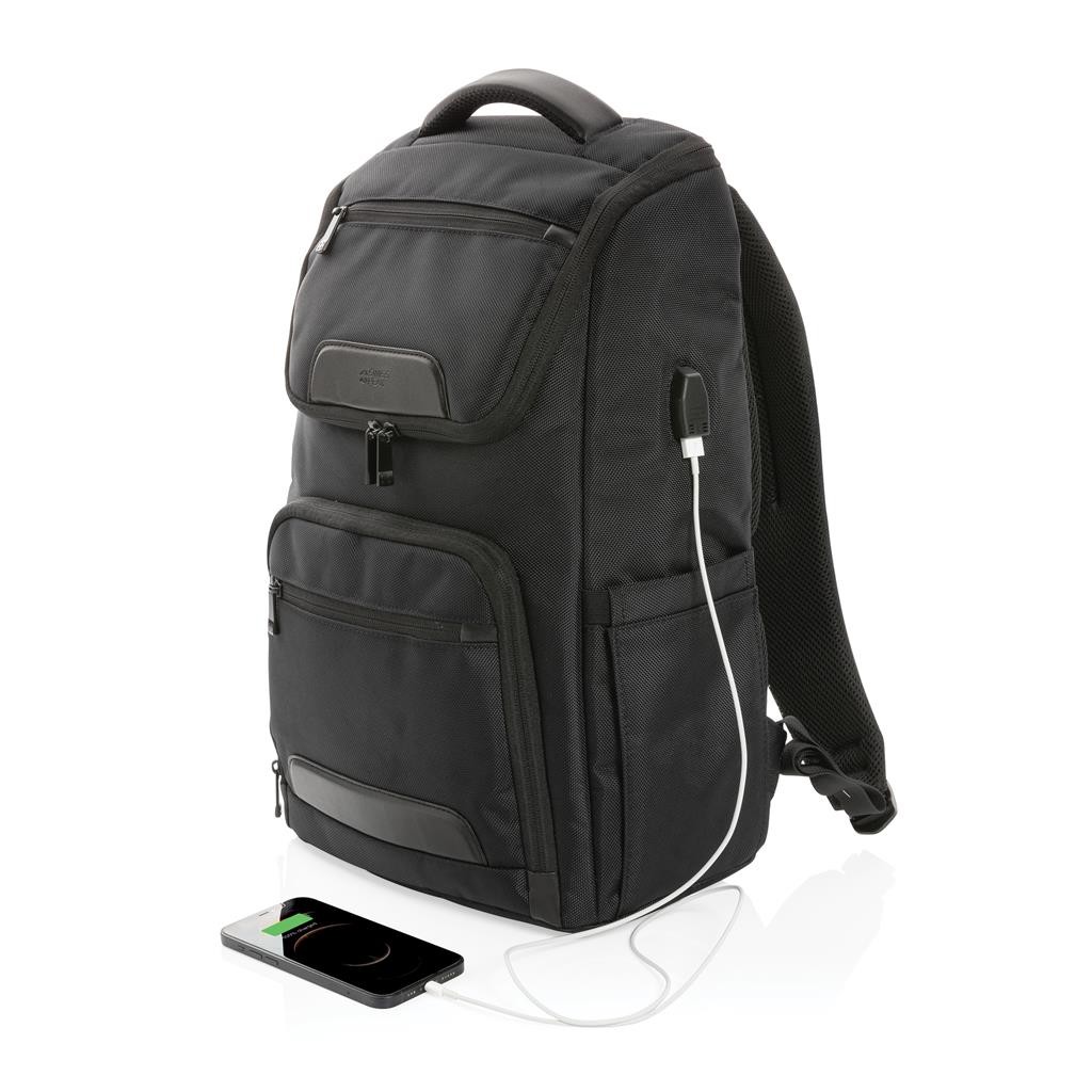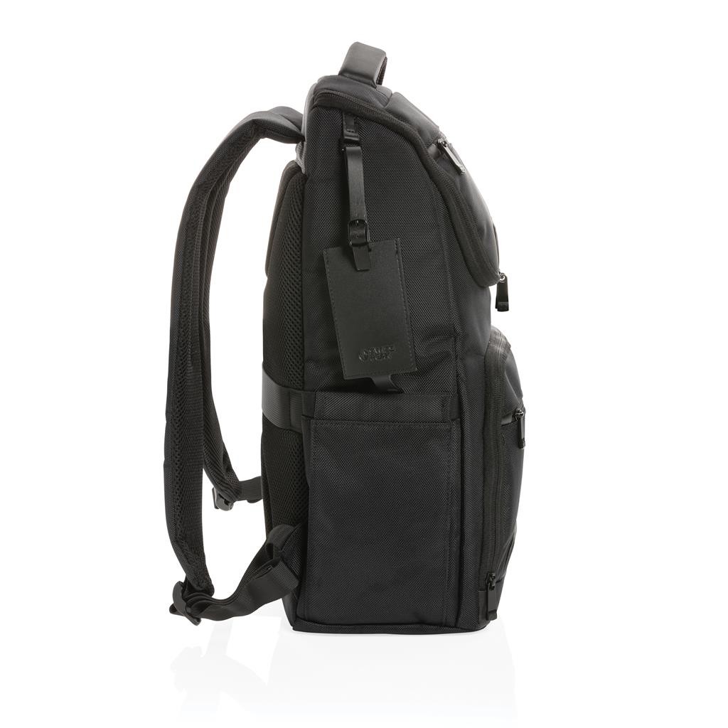 Elegantný skvele vybavený batoh na každodenné cestovanie. Vyrobený z pevného recyklovaného polyesteru 1680D s bohatými detailmi z umelej kože. Prakticky navrhnutý dizajn s množstvom vreciek. Priestranný hlavný oddiel, polstrovaný oddiel na 15,6" notebook, dodatočné menšie vrecko na zips. USB výstup pre nabíjanie telefónu na cestách, vrecká s RFID ochranou, pútka na perá, postranné vrecko na fľašu a odnímateľný kontaktný štítok. Zloženie: vonkajšia časť: 100 % 1680D recyklovaný polyester, vnútorná časť (podšívka): 150D recyklovaný polyester Vrátane skenovateľnej zložky AWARE™ garantujúcej obsah recyklátu. Na výrobu bolo využitých 49,92 500ml PET fliaš a bolo usporených 29,8 litrov vody. Navyše prispelo 2 % na podporu iniciatívy Water.org.