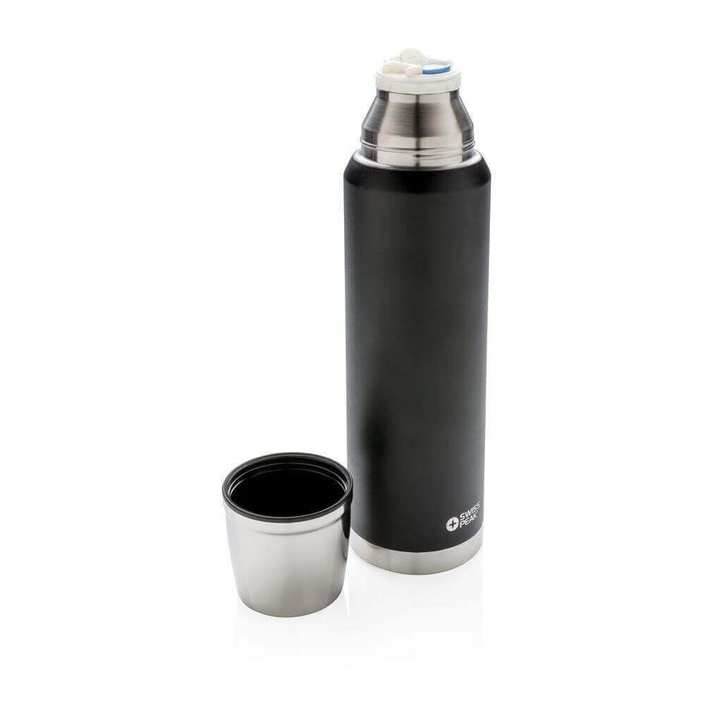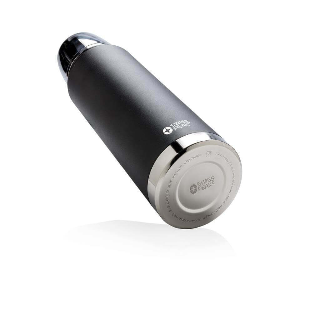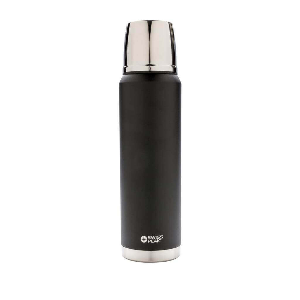 Rad Swiss Peak Elite vyčnieva použitím dvojstennej vákuovo medenej izolácie a nerezovej ocele 18/8. Kvalitný matný čierny nástrek zaručene vydrží bez vyblednutia či popraskania. Vnútorná stena je osadená medenou izoláciou, vďaka ktorej vaše nápoje ostanú horúce po dobu až 8 hodín a studené až po 24 hodín. Len pre ručné umývanie, nepriepustná. Objem 1000 ml.