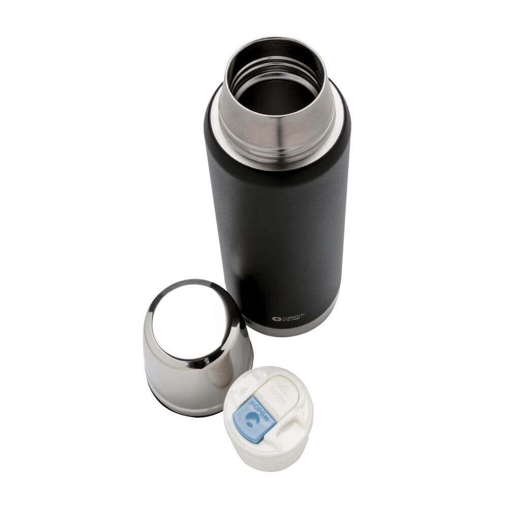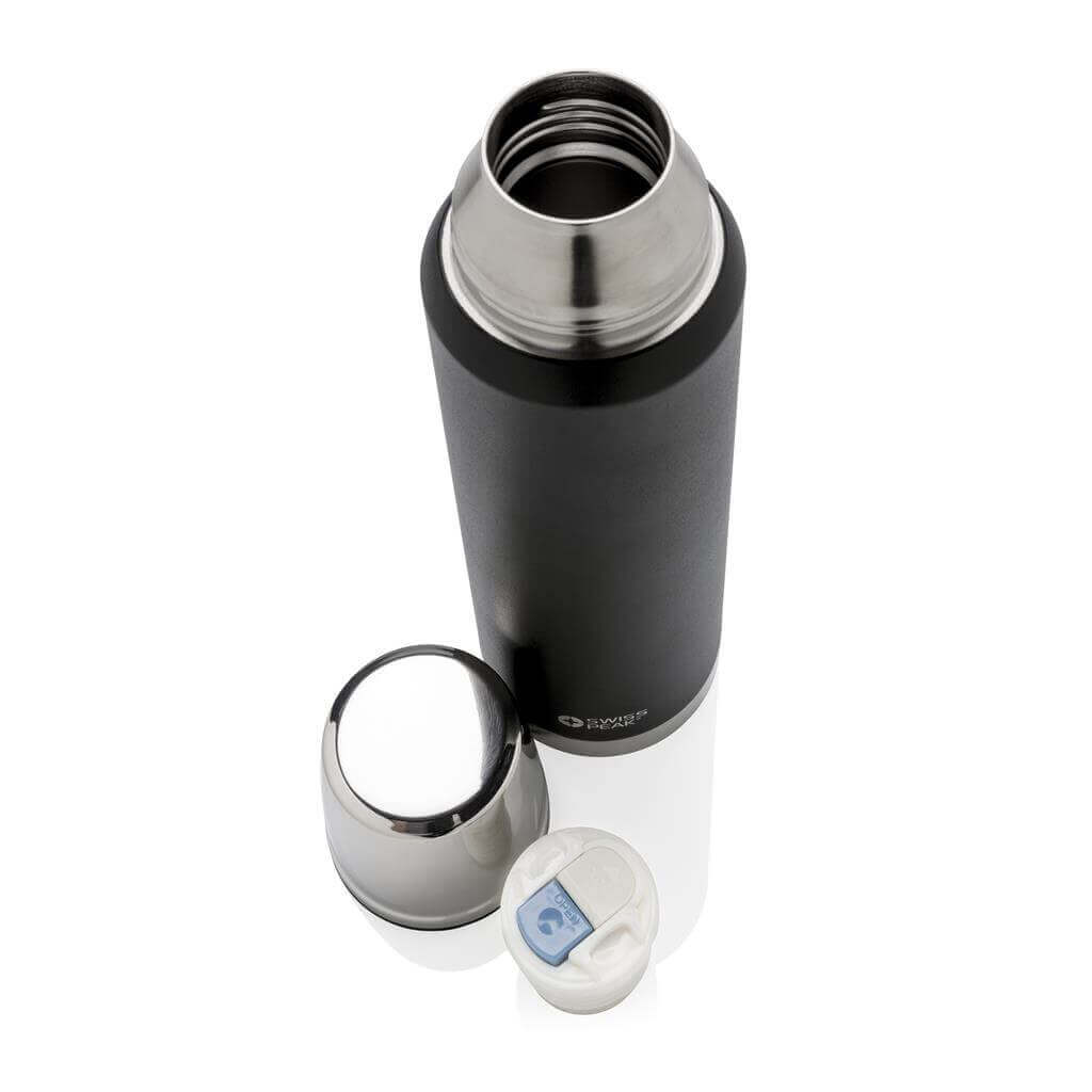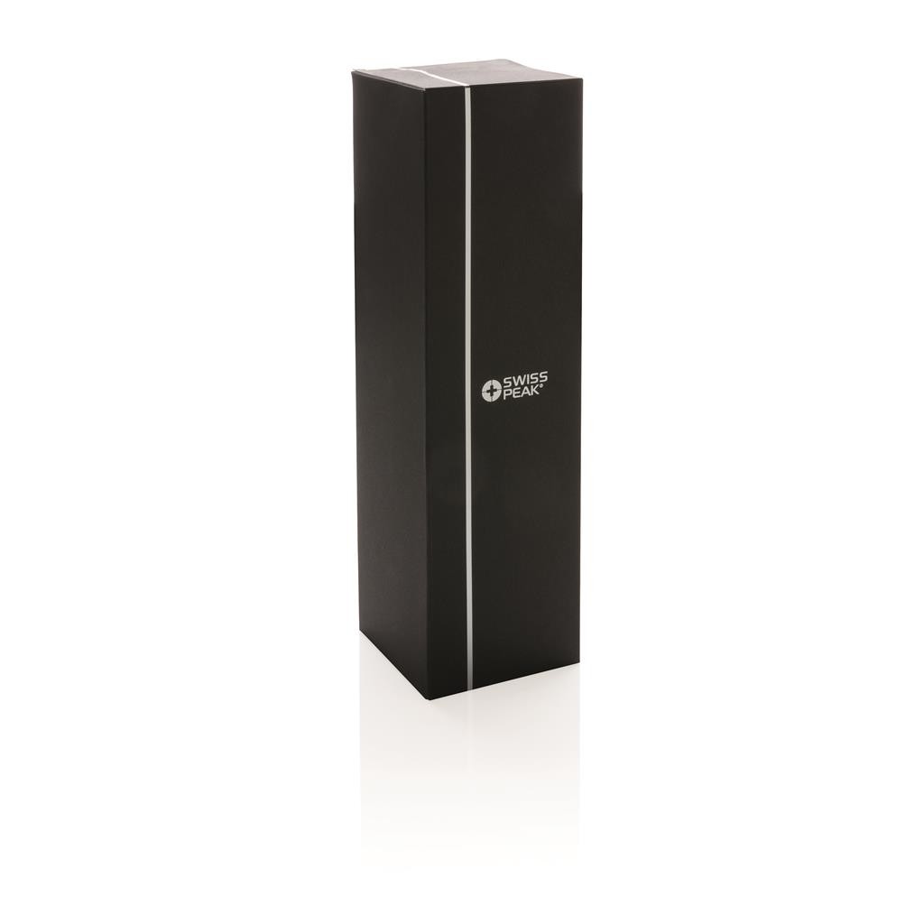 Rad Swiss Peak Elite vyčnieva použitím dvojstennej vákuovo medenej izolácie a nerezovej ocele 18/8. Kvalitný matný čierny nástrek zaručene vydrží bez vyblednutia či popraskania. Vnútorná stena je osadená medenou izoláciou, vďaka ktorej vaše nápoje ostanú horúce po dobu až 8 hodín a studené až po 24 hodín. Len pre ručné umývanie, nepriepustná. Objem 1000 ml.