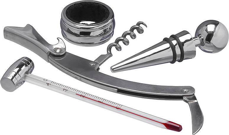 Luxusná súprava pre milovníkov vína, 4 ks, v drevenej darčekovej krabici, materiál drevo/kov. Odporúčaná technológia tlače: tampontlač T3, laser L2 Maximálna veľkosť tlače: 50 × 20 mm Rozmery: 15 × 17,5 × 5 cm Kartónové množstvo v ks: 20