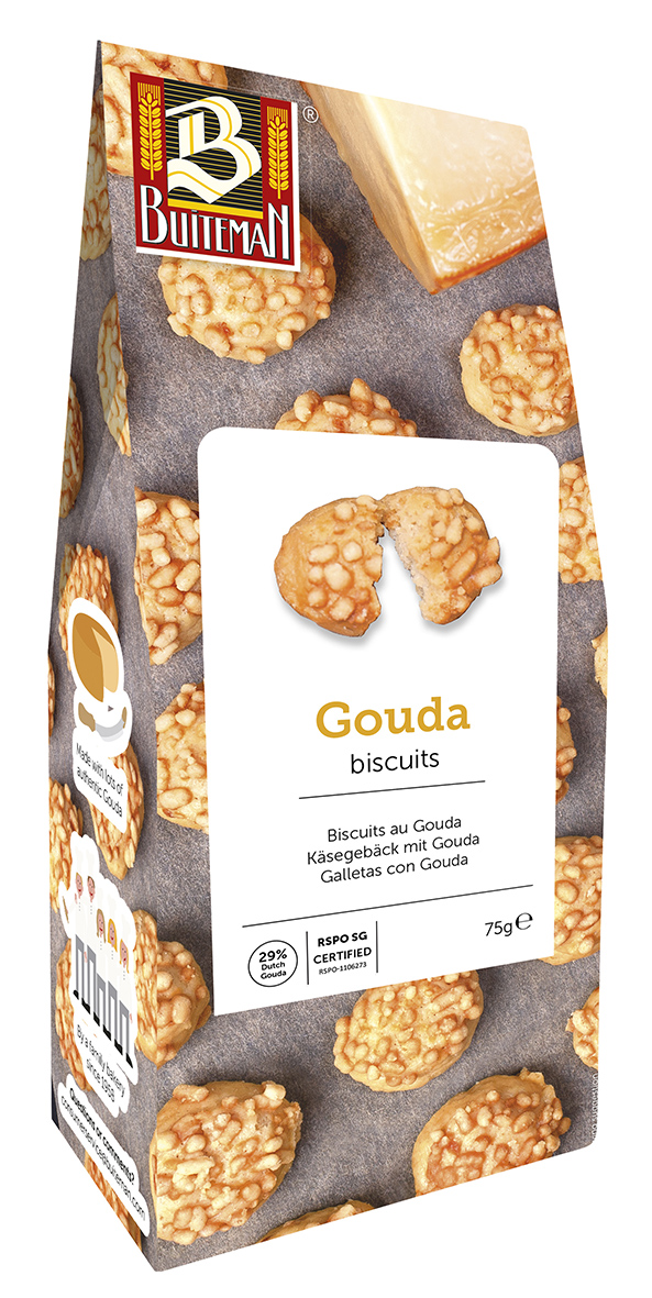 Syrový snack so syrom GOUDA obsahuje 29 % autentického vyzretého syra Gouda. Sušienky sú premiešané a posypané strúhanou Goudou a následne pečené do chrumkava, vďaka čomu získavajú drobivú konzistenciu a bohatú syrovú chuť. Ocenené zlatou hviezdou Great Taste Awards 2020. Ideálne ako lahodný snack k červenému vínu Ruby Port alebo na spríjemnenie každého posedenia.