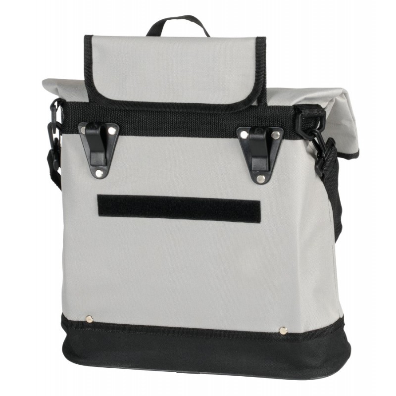 Taška BIKE MATE: priestranná hlavná priehradka so zipsom a prackou na bočné zapínanie, predné vrecko na zips, montážny systém, ktorý je možné zakryť, madlo na prenášanie, nastaviteľný a odnímateľný ramenný popruh s polstrovaním.