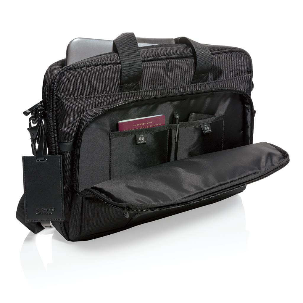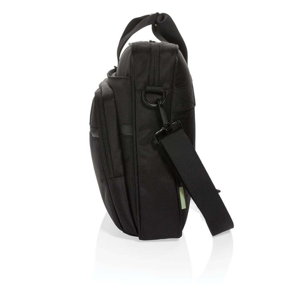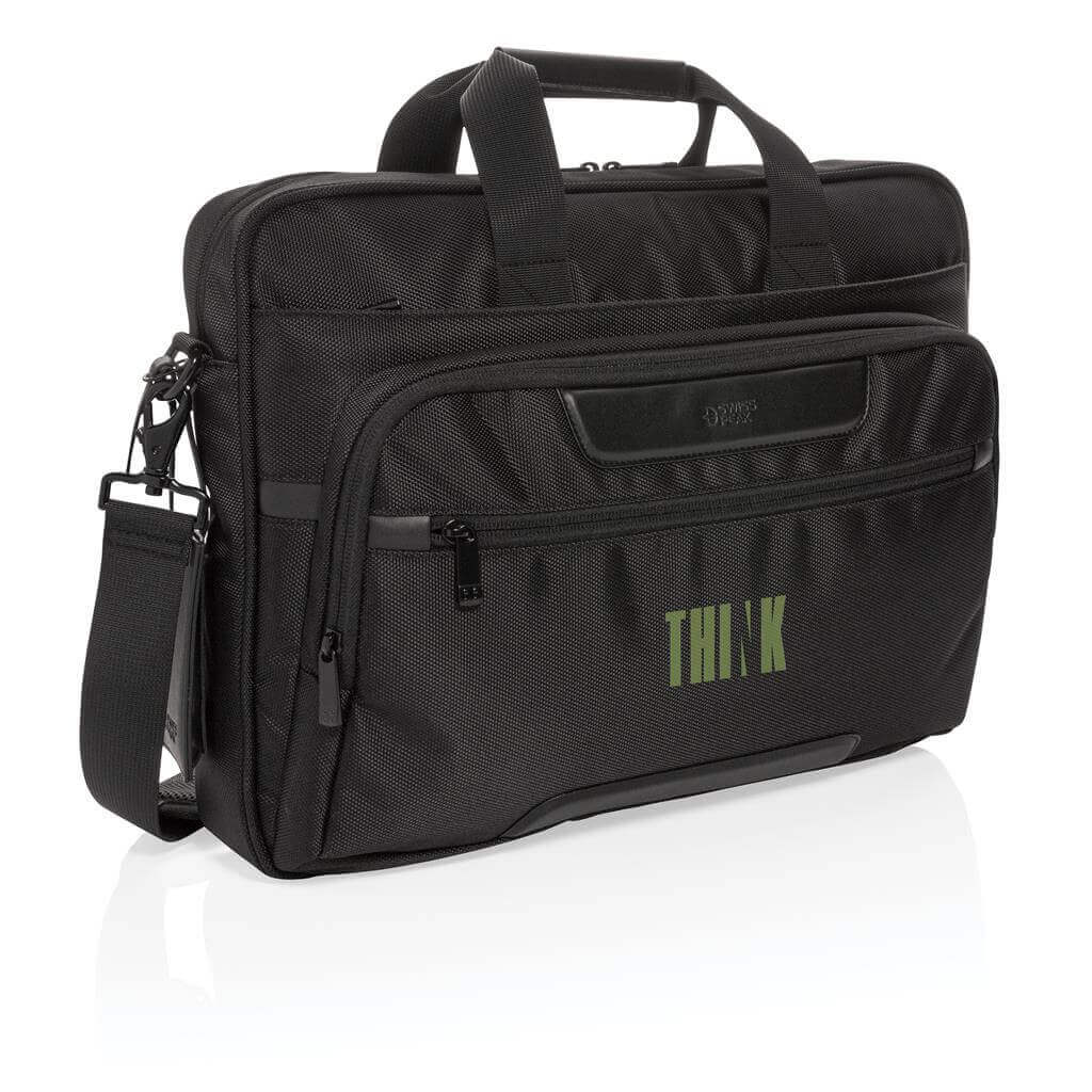 Urobte si s touto taškou na notebook každodenné dochádzanie o niečo jednoduchšie a oveľa štýlovejšie. Taška je vyrobená z odolnej polyesterovej tkaniny 1680D RPET s bohatými PU detailmi a má niekoľko vreciek na uskladnenie a organizáciu. Okrem priestrannej hlavnej priehradky má táto taška polstrované 15,6-palcové vrecko na notebook a ďalšie vrecko na zips na uloženie vašich ďalších každodenných vecí. Medzi ďalšie funkcie tejto tašky patrí výstup USB, vrecká RFID, pútka na perá a odnímateľný štítok na batožinu.