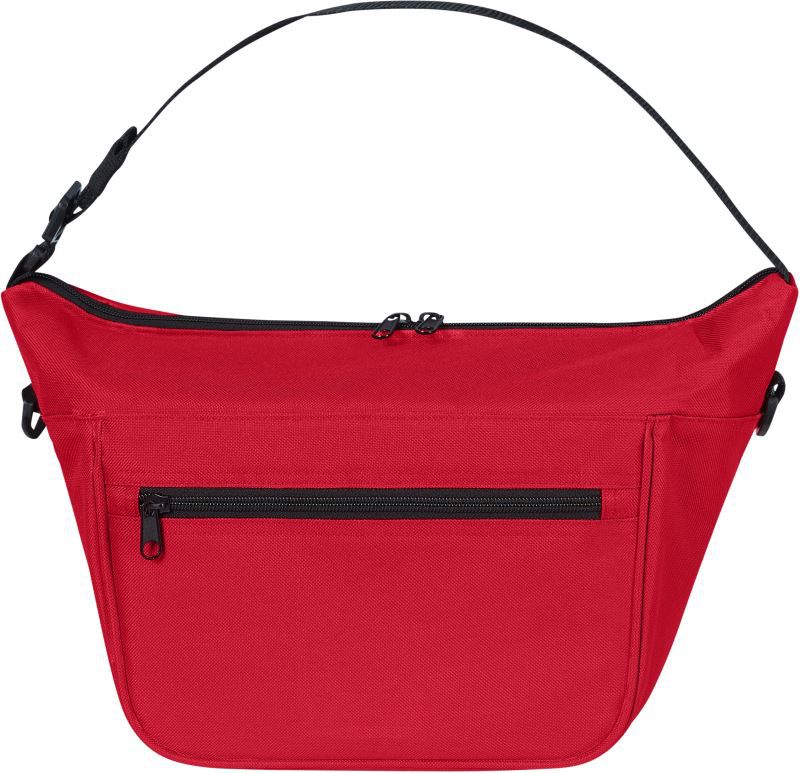 Chladiaca taška, odnímateľný, nastaviteľný ramenný popruh, malé nožičky, hlavná priehradka s 2-cestným zipsom, polstrovaná hlavná priehradka, ľahko umývateľný vnútro, pútka na upevnenie na riadidlá, rozmery: 26x17x15cm.