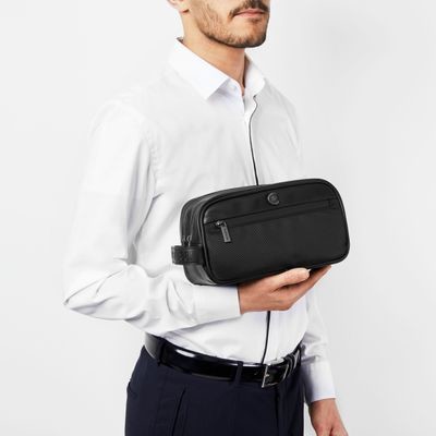 Minimálna, elegantná a decentná cestovná kolekcia Bond kombinuje súčasný nylon s luxusnou textúrou vegánskej kože pre výsledok, ktorý sa ľahko nosí a hodí ku každému outfitu. Tašky sú podpísané matnou verziou našej CRR dosky. Všetky detaily sú starostlivo premyslené: od zipsov s vyrytým logom až po nadrozmerný, ale jemný podpis CERRUTI 1881 vyrazený na bočnej rukoväti. Pohyblivé a ľahké, je to perfektné kozmetické cestovné puzdro.
