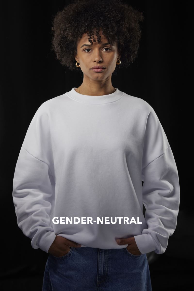 Oversize, rebrované manžety na rukávoch a leme, odsadené ramenné švy, LSF (low shrinkage fleece) pre menšie zrážanie, technológia PST priadze, povrch zo 100% bavlny, vo vnútri česaná, neutrálny veľkostný štítok, prateľné na 30 °, nemožno sušiť v sušičke.