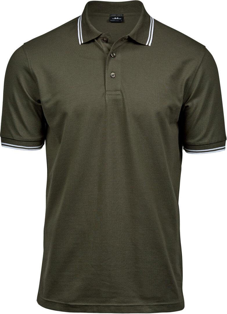 95% česaná bavlna predpraná proti zrážaniu, 5% elastan, minipiqué Ľahko priliehavý strih, prúžkovaný pletený golier s Lycrou®, zosilnená gombíková léga s 3 gombíky tón v tóne, dvojité švy na ramenách, rukávoch a leme, pásik na ramenách a okolo krku, prúžkované rebrované manžety na rukáve, bočné rozparky, možno prať na 40 °