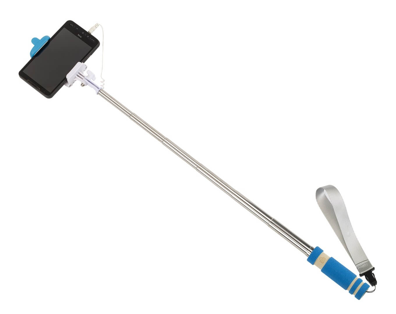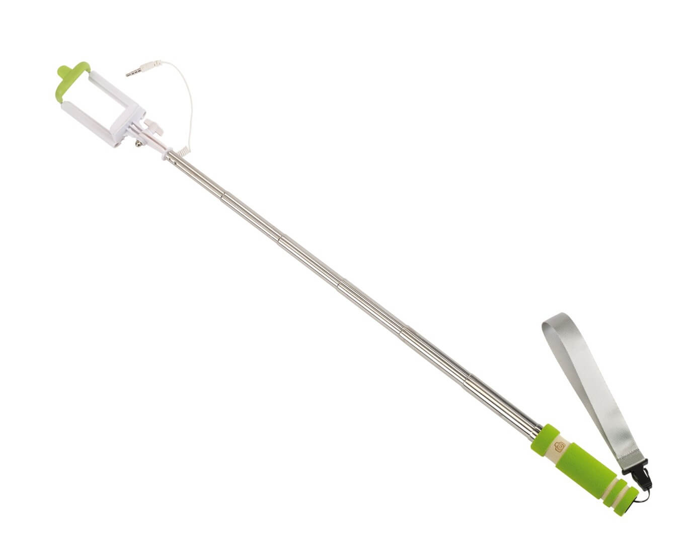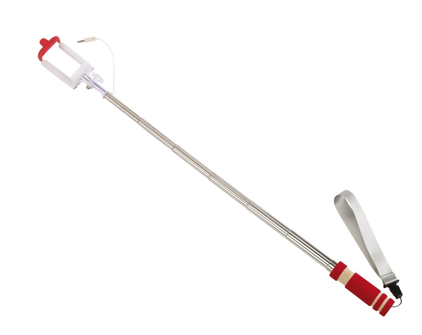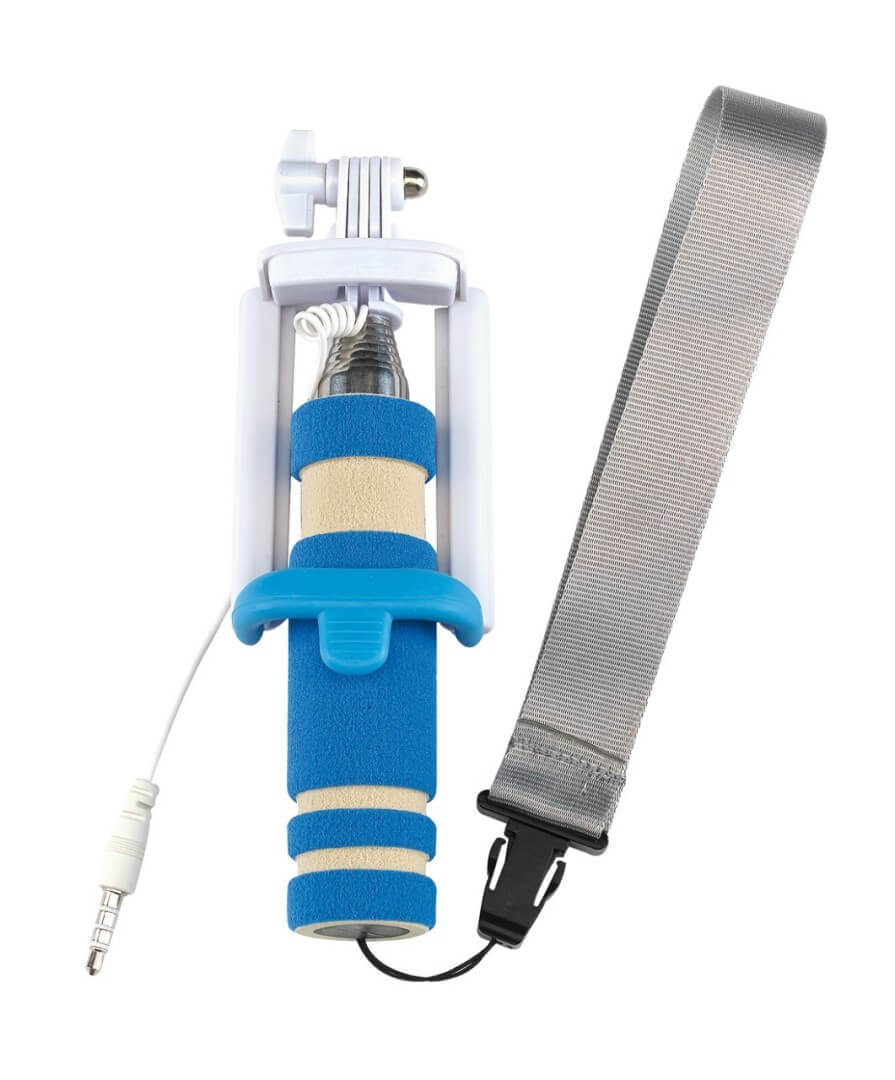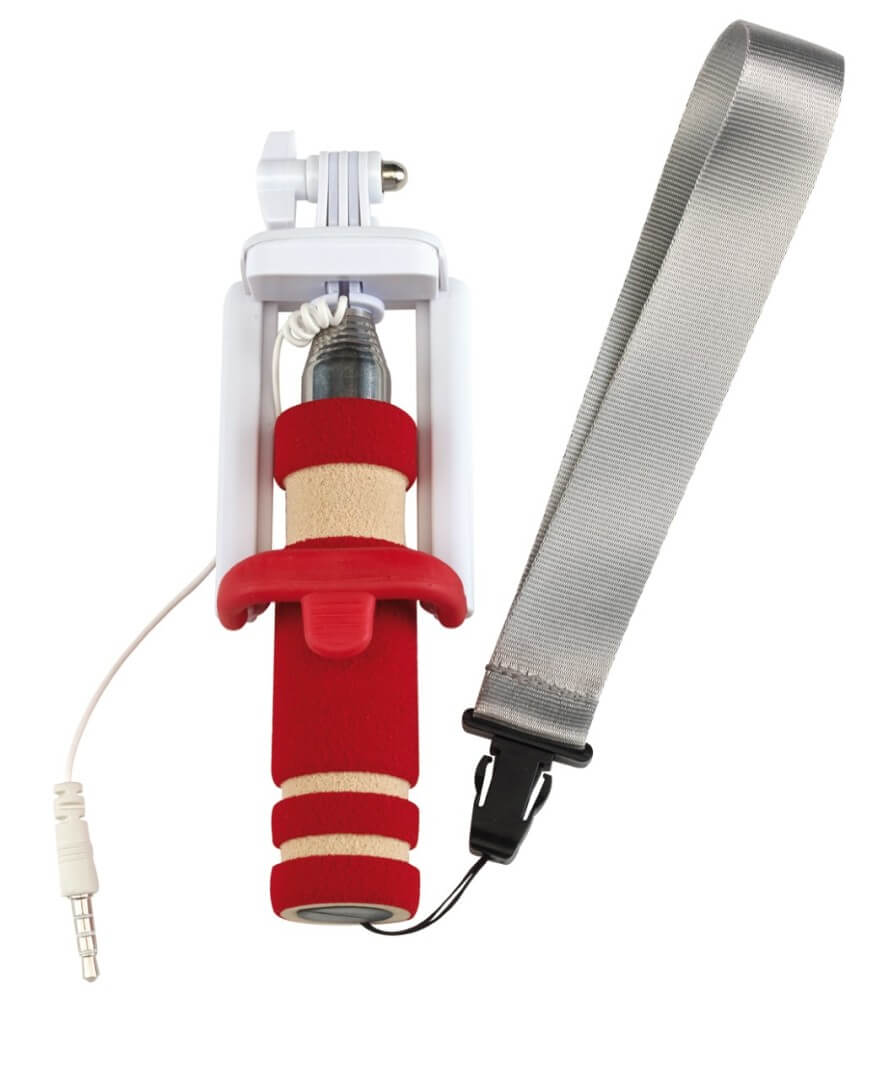 Teleskopická selfie tyčka "Selfie Mini" - vhodná pre vytvorenie autoportrétu so smartphonom širokým až 8,5 cm: integrovaný kábel je možné pripojiť k výstupu zvukového konektoru telefónu, spúšťacie tlačidlo na rukoväti, kompatibilný s operačným systémom Android 4.1.2 a iOS 5.0 a novším (v závislosti na konfigurácii), teleskopická tyč rozšíriteľná od cca 23 cm do cca 61 cm, držiak s uhlom sklonu až do cca 270 stupňov, penová s pripínateľným pútkom na zápästie