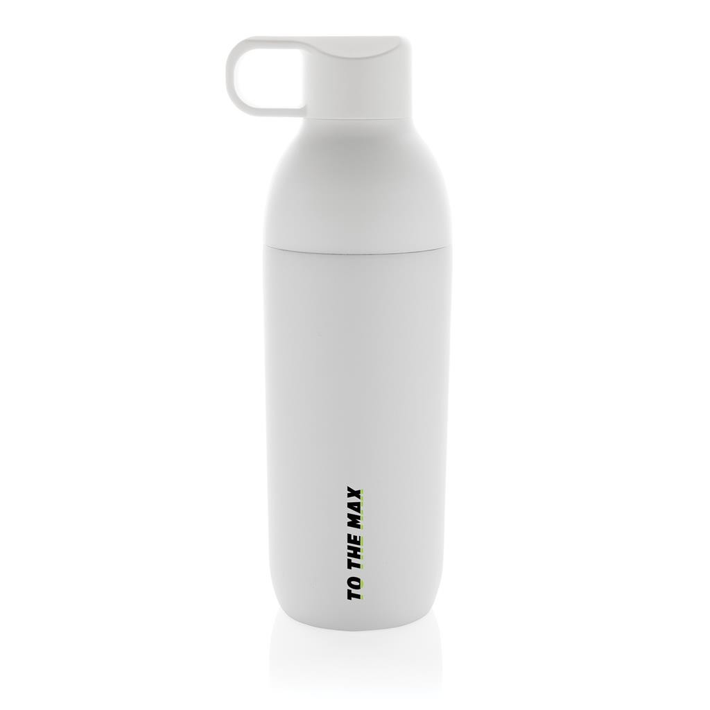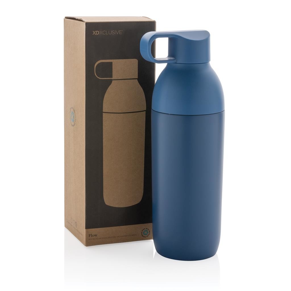 Termo fľaša Flow s unikátnou konštrukciou, vďaka ktorej sa ľahko plní, ľahko sa z nej pije, dá sa však aj rozobrať na ľahké čistenie. Nápoje uchová až 5 hodín horúce a až 15 hodín studené. Vyrobená z RCS recyklovaných materiálov. RCS (Recycled Claim Standard) je globálny štandard, ktorý umožňuje overiť použitie recyklovaného materiálu v produkte naprieč celým dodávateľským reťazcom.