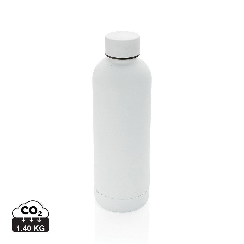 Ideálna fľaša pre celodenné udržiavanie pitného režimu. Minimalistický, napriek tomu veľmi štýlový nadčasový design. Nápoje ochová až 5 hodín horúce a až 15 hodín studené. Vyrobená z RCS recyklovanej ocele. RCS (Recycled Claim Standard) je globálny štandard, ktorý umožňuje overiť použitie recyklovaného materiálu v produkte naprieč celým dodávateľským reťazcom. Celkový podiel recyklátu podľa váhy produktu: 80%. Objem: 500 ml. Bez BPA. Balené v FSC® kraftovej darčekovej krabičke.