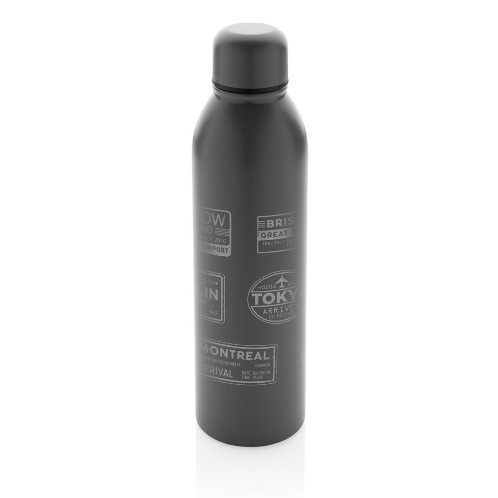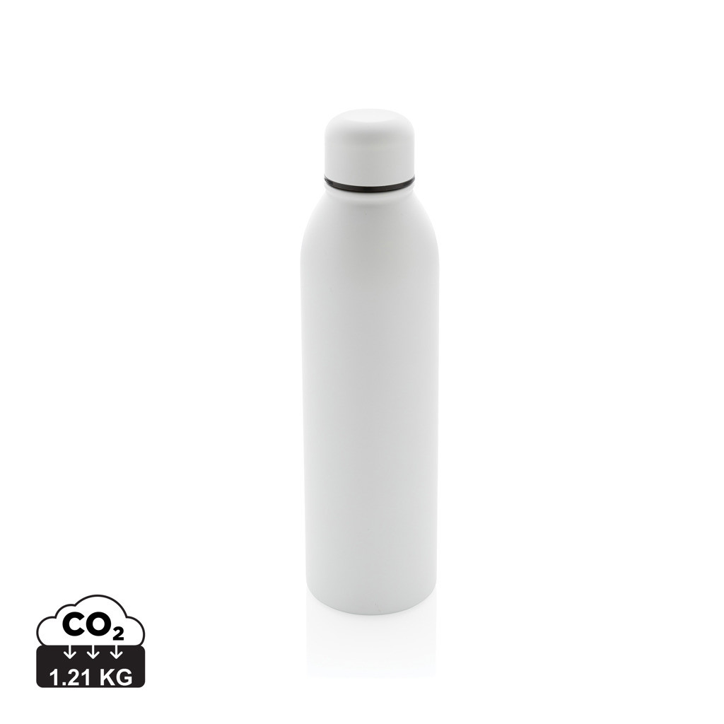 Nepriepustná termo fľaša s bezpečným skrutkovacím uzáverom s úzkym hrdlom pre pohodlné pitie. Úzke telo pasuje do väčšiny automobilových držiakov na nápoje. Dvojstenná vákuová izolácia uchová nápoj horúci po dobu až 5h a studený až 15h. Vyrobené z RCS recyklovanej nehrdzavejúcej ocele. RCS (Recycled Claim Standard) je globálny štandard, ktorý umožňuje overiť použitie recyklovaného materiálu v produkte naprieč celým dodávateľským reťazcom. Podiel použitého recyklovaného materiálu vzhľadom na celkovú váhu produktu: 90 %. Bez BPA. Objem: 500 ml. Balené v FSC kraftovej krabičke.