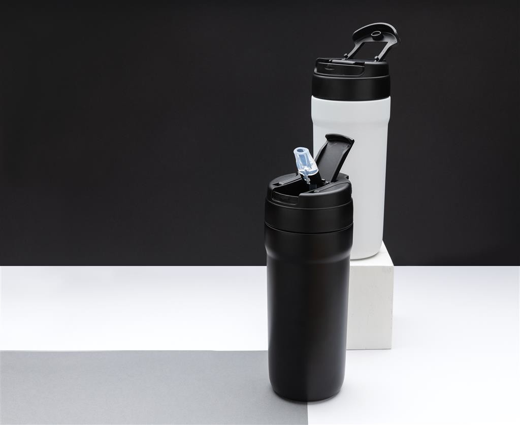 Univerzálna termo fľaša s duálnym uzáverom, ktoré umožňuje pitie vysúvacou slamkou alebo cez klasické skrutkovacie viečko. Vyrobené z RCS recyklovanej nehrdzavejúcej ocele. RCS (Recycled Claim Standard) je globálny štandard, ktorý umožňuje overiť použitie recyklovaného materiálu v produkte naprieč celým dodávateľským reťazcom. Podiel použitého recyklovaného materiálu vzhľadom na celkovú váhu produktu: 78 %. Bez BPA. Objem: 670 ml. Balené v FSC kraftovej krabičke.