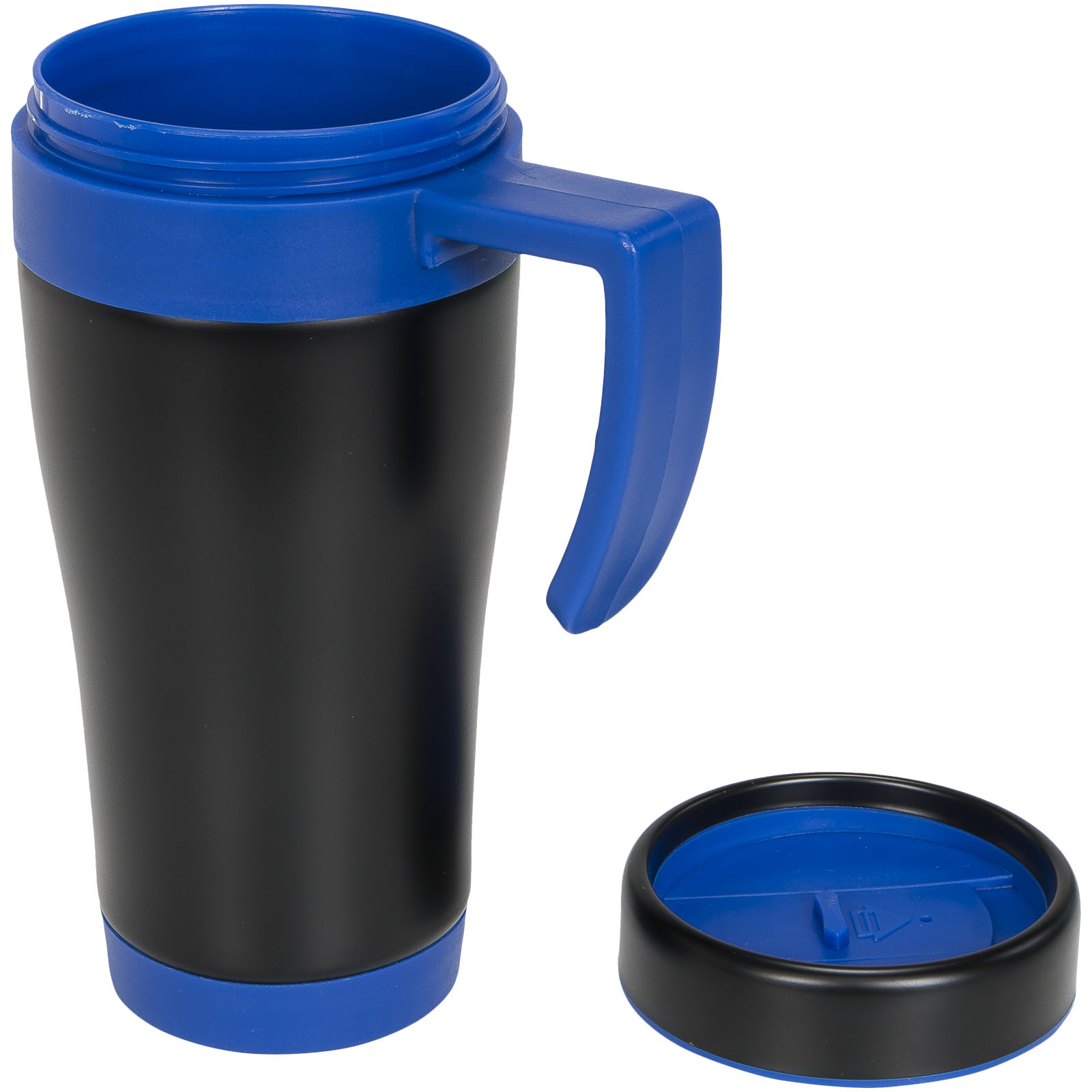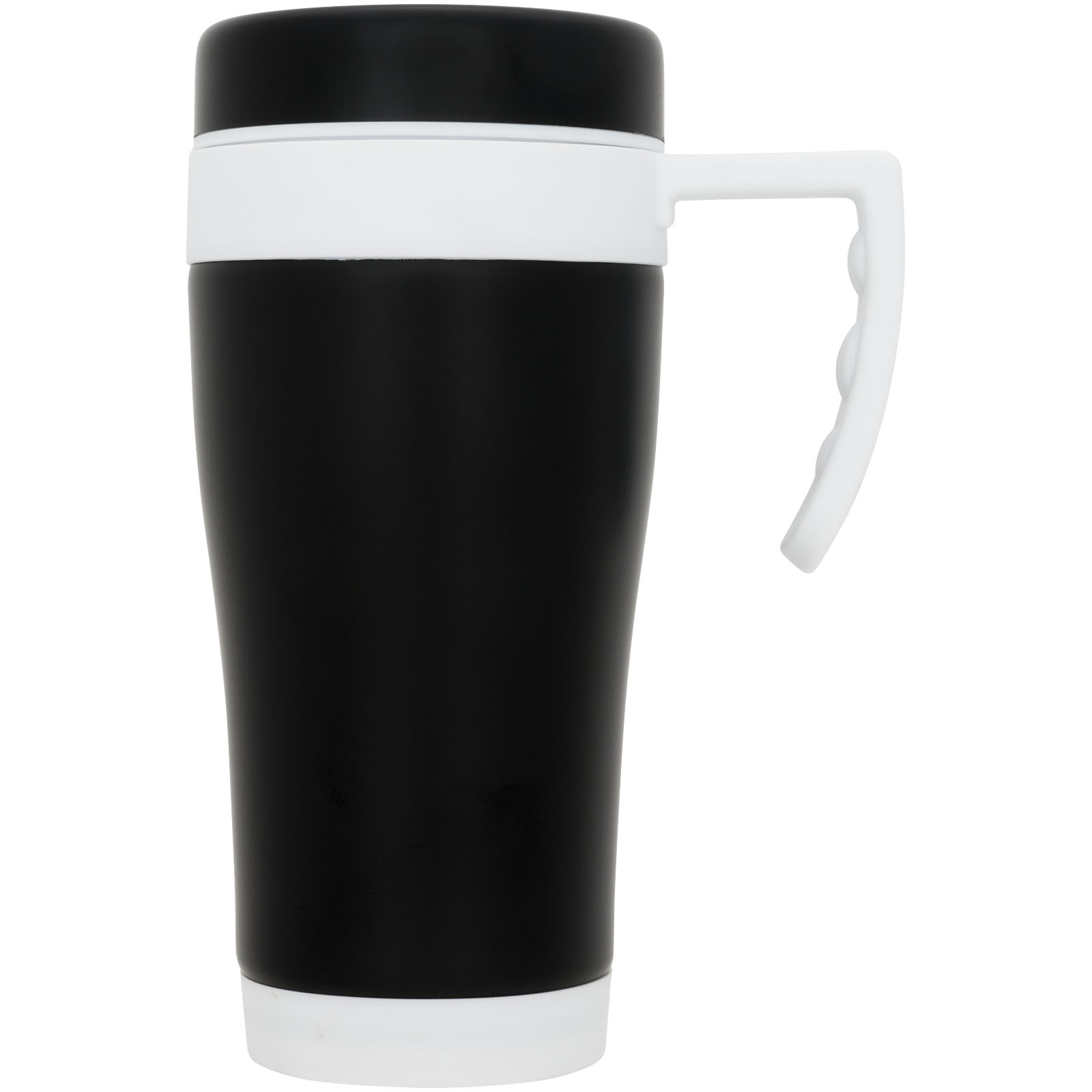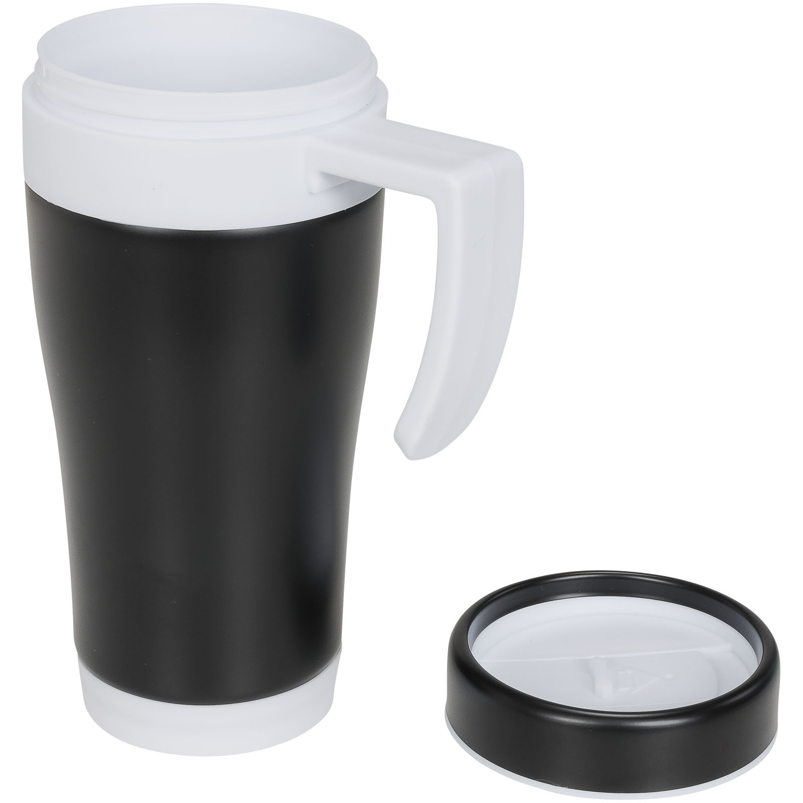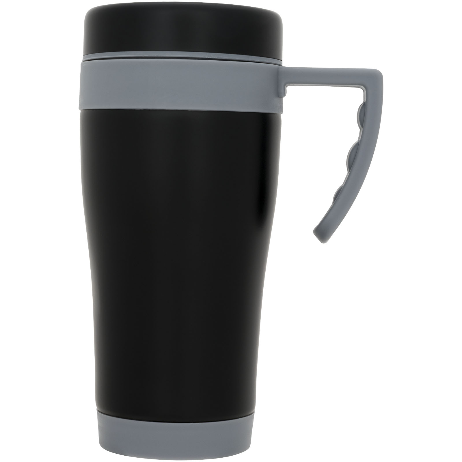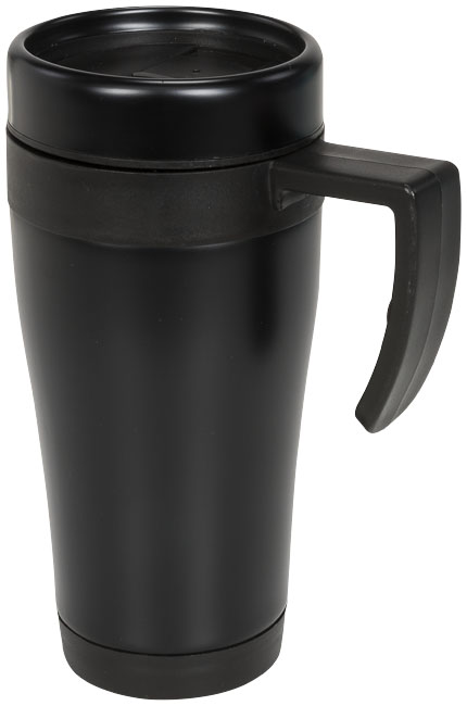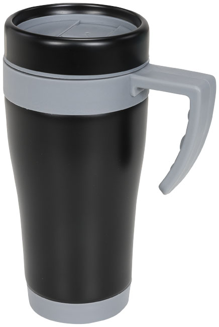 Termohrnček Cayo 400 ml. Dvojplášťový hrnček s bajonetovým uzáverom, v ktorom je posuvné viečko. Ponúka veľkú plochu pre reklamu, povrch má čiernu úpravu, na ktorom vynikne Vaše gravírovanie. Objem 400 ml. Nerezová oceľ a PP plast.