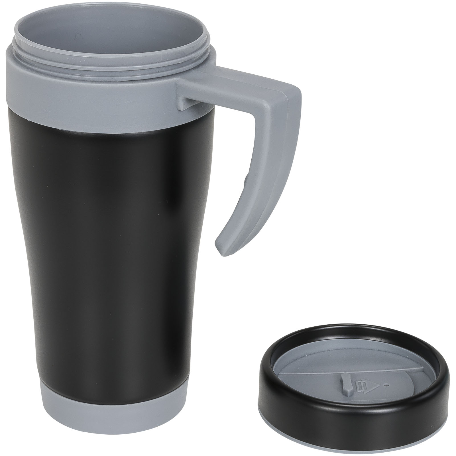 Termohrnček Cayo 400 ml. Dvojplášťový hrnček s bajonetovým uzáverom, v ktorom je posuvné viečko. Ponúka veľkú plochu pre reklamu, povrch má čiernu úpravu, na ktorom vynikne Vaše gravírovanie. Objem 400...