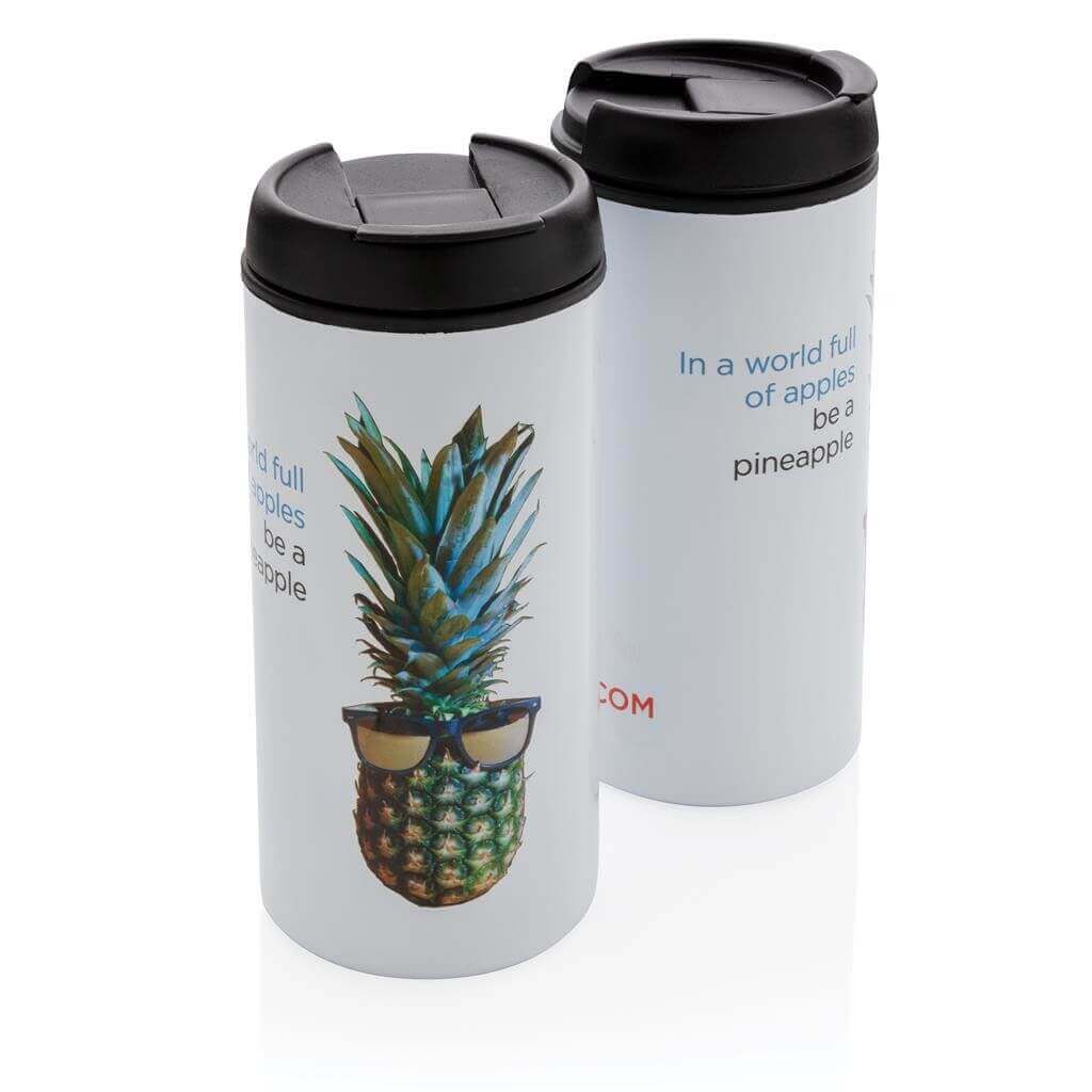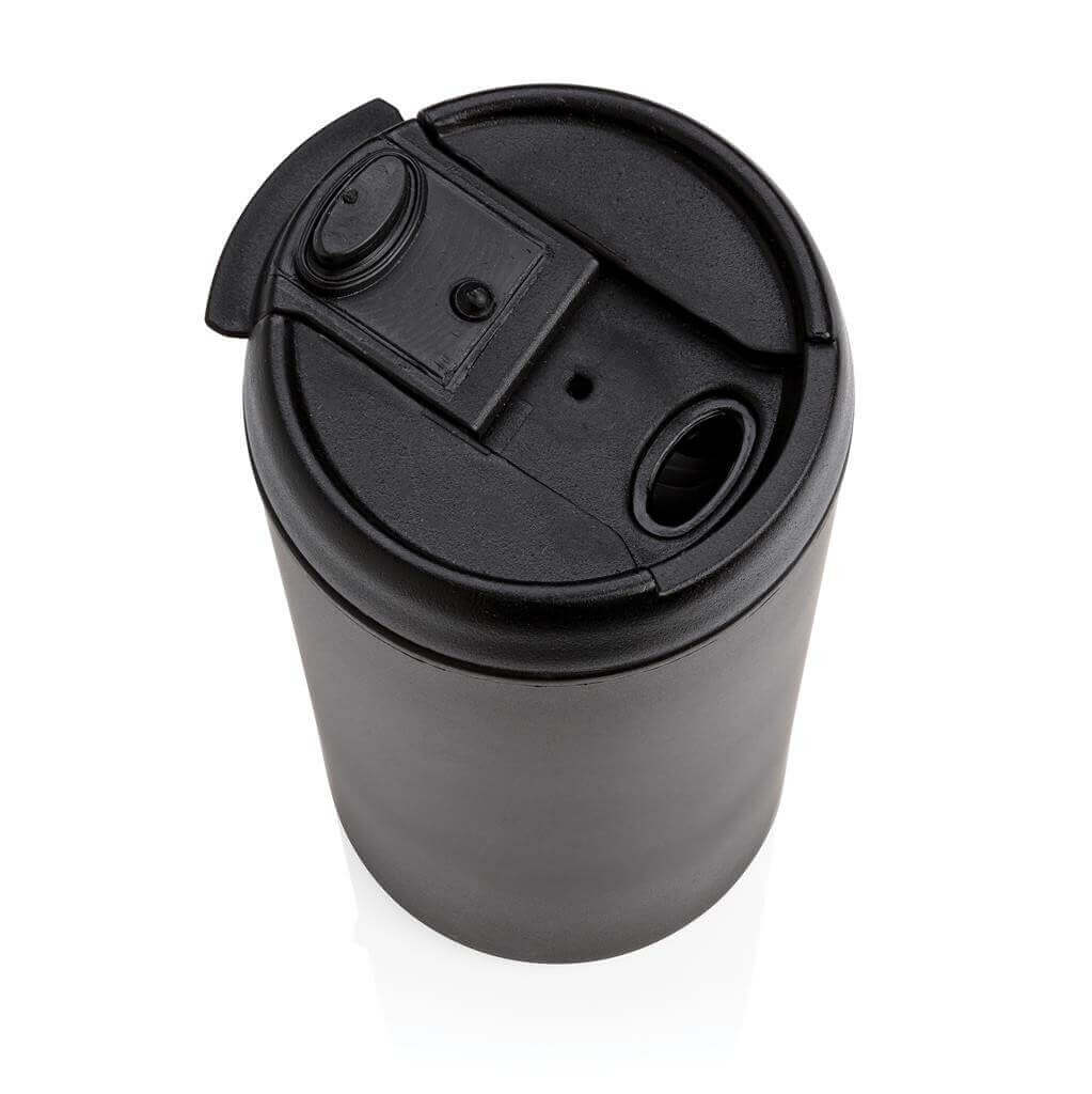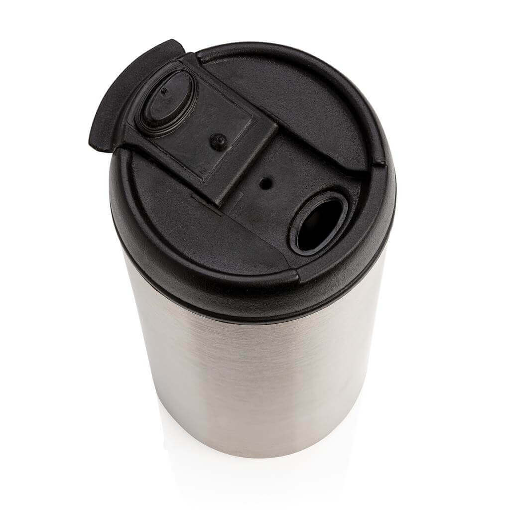 Minimalistický termohrnček Metro s odklápacím viečkom a nestarnúcim dizajnom. Vyrobené z RCS reyklovaných materiálov. RCS (Recycled Claim Standard) je globálny štandard, ktorý umožňuje overiť použitie recyklovaného materiálu v produkte naprieč celým dodávateľským reťazcom. Celkový podiel recyklátu podľa váhy produktu: 90%. Objem: 300 ml. Balené v FSC® kraftovej darčekovej krabičke. Bez BPA. Ochranný vzor®