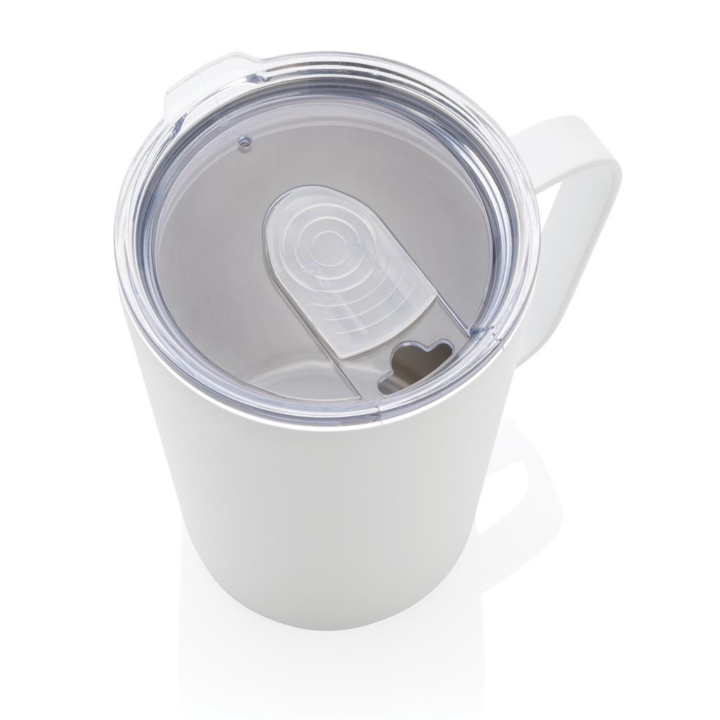 Moderný termohrnček s viečkom so zasúvacím systémom pre ľahké pitie. Ideálna na cesty do práce alebo dopriavanie si obľúbeného nápoja v práci. Dvojstenná vákuová izolácia uchová nápoj horúci po dobu až 3h a studený až 6h. Vyrobené z RCS recyklovanej nehrdzavejúcej ocele. RCS (Recycled Claim Standard) je globálny štandard, ktorý umožňuje overiť použitie recyklovaného materiálu v produkte naprieč celým dodávateľským reťazcom. Podiel použitého recyklovaného materiálu vzhľadom na celkovú váhu produktu: 88 %. Bez BPA. Objem: 420 ml. Balené v FSC kraftovej krabičke.