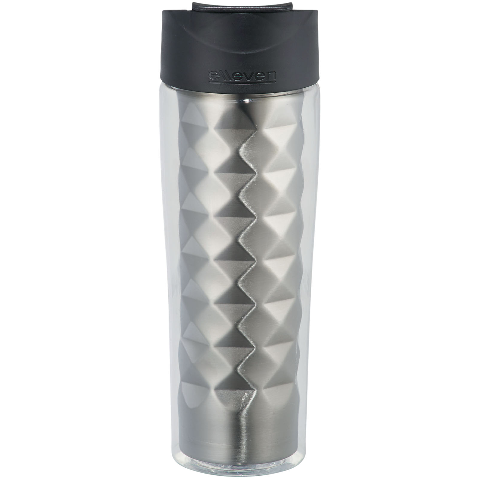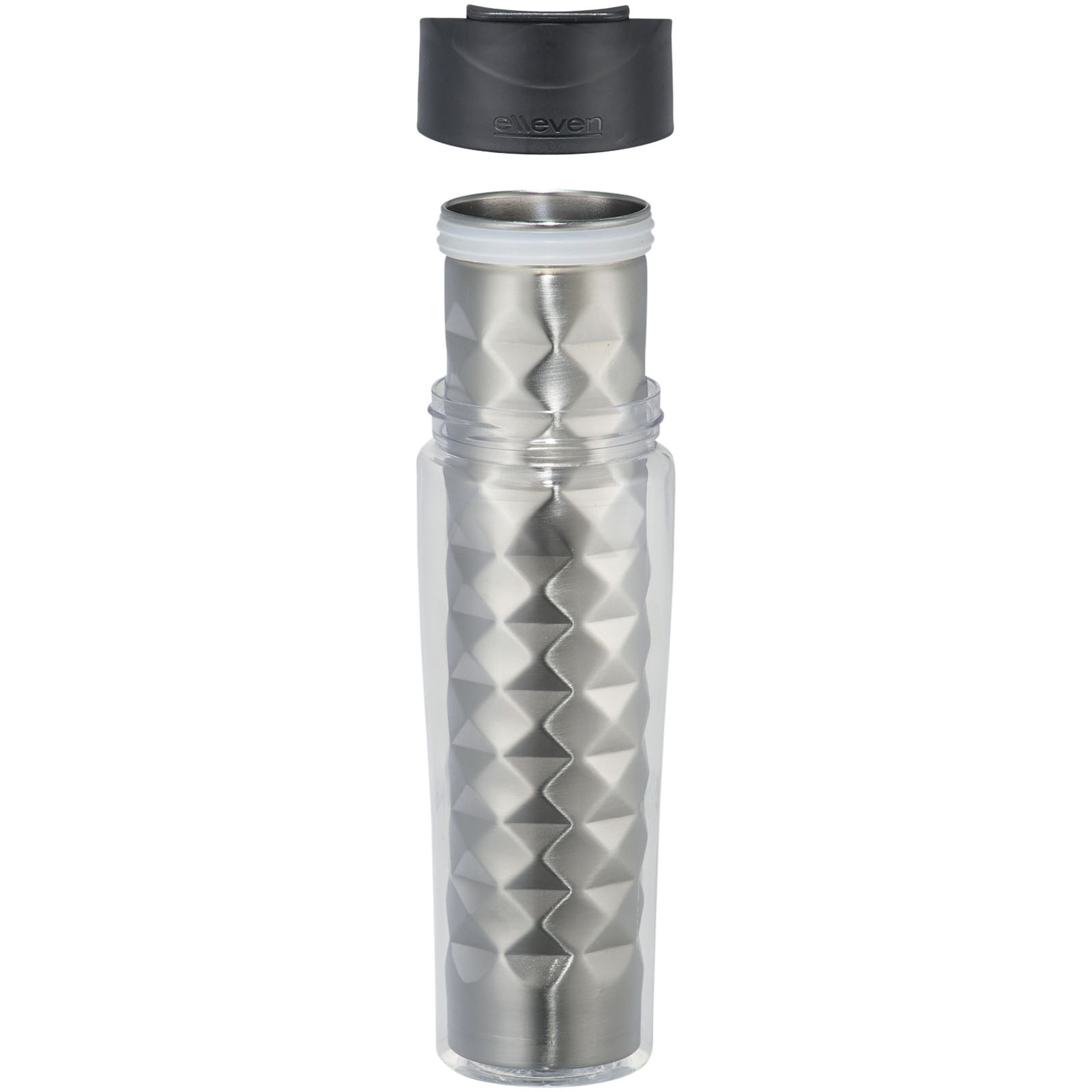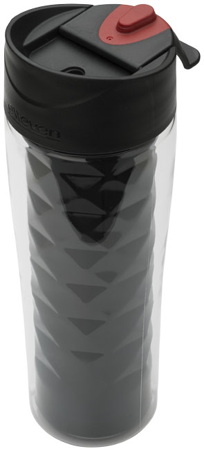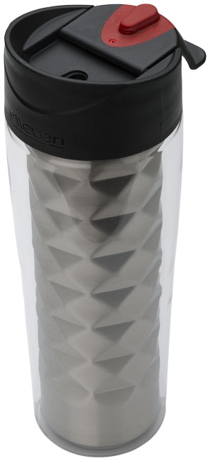 Termohrnček Traver 2-v-1. Dvojplášťová vákuová termoska z nerezovej ocele s odklápacou nápojové krytkou (flip-top) a premysleným geometrickým dizajnom. Dodávané v darčekovej kazete Elleven. Nerezová oceľ. Nekvapkajúci flase. Objem 475 ml. BPA-free Eastman Tritan ™.