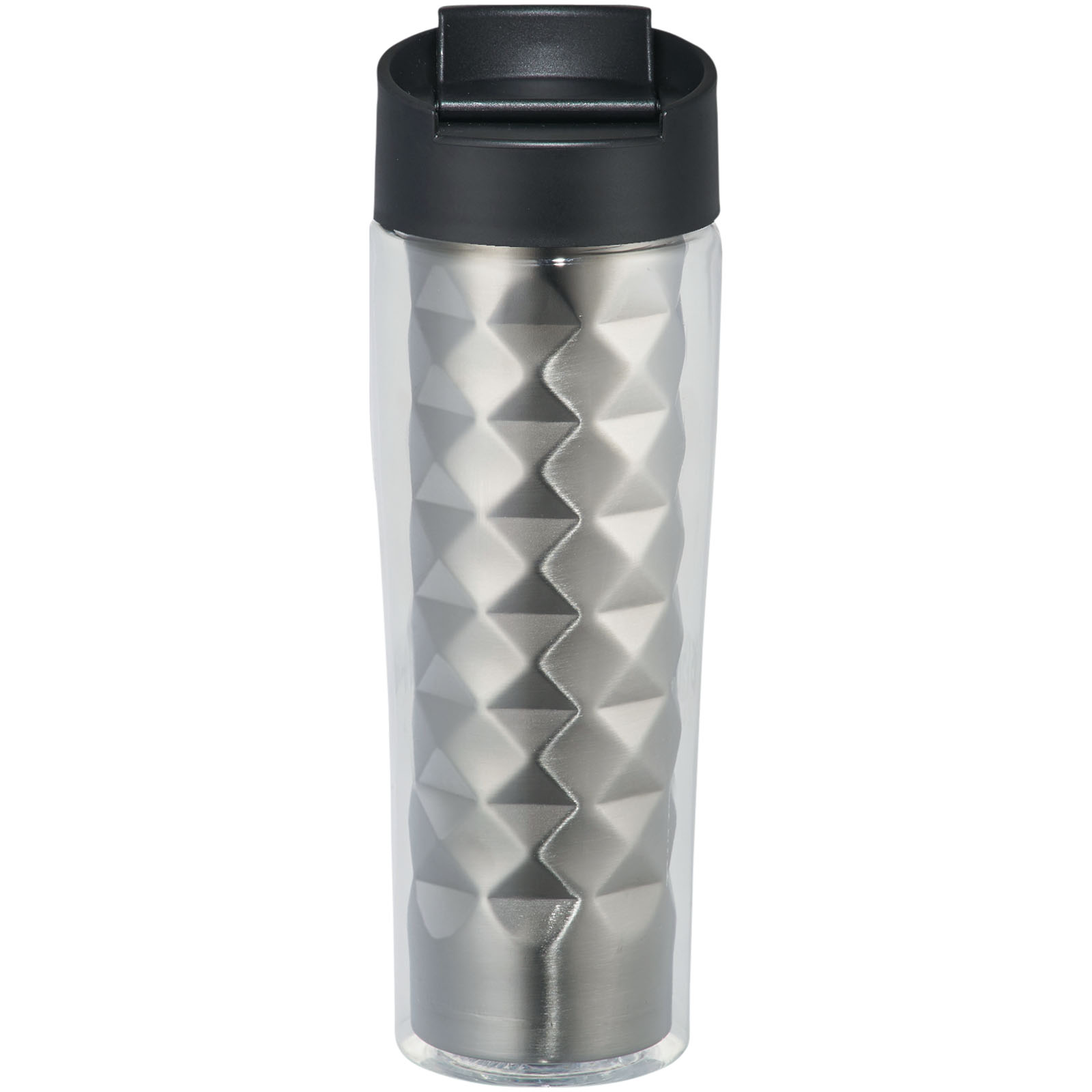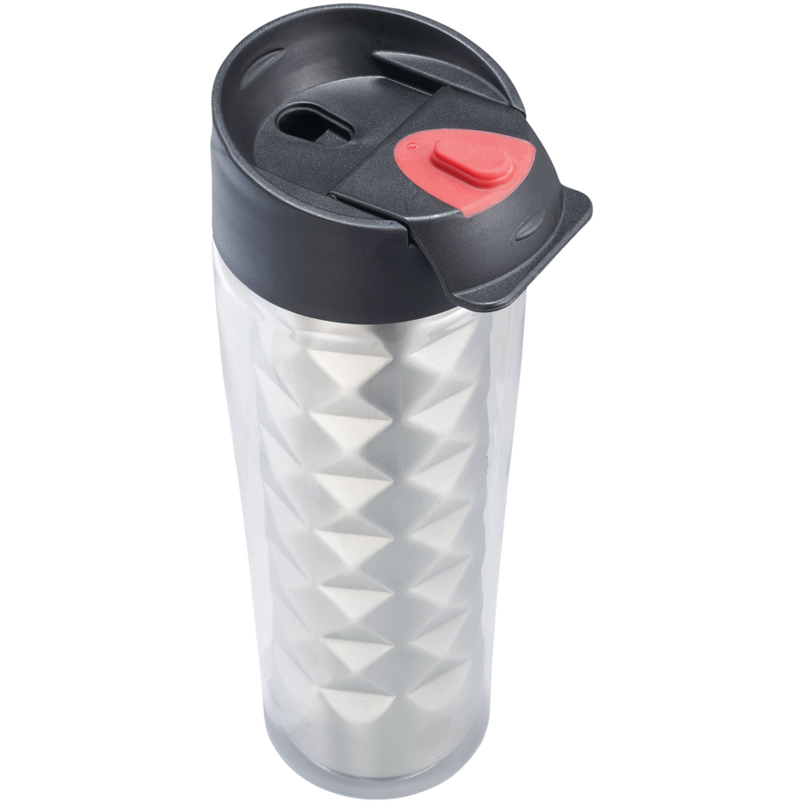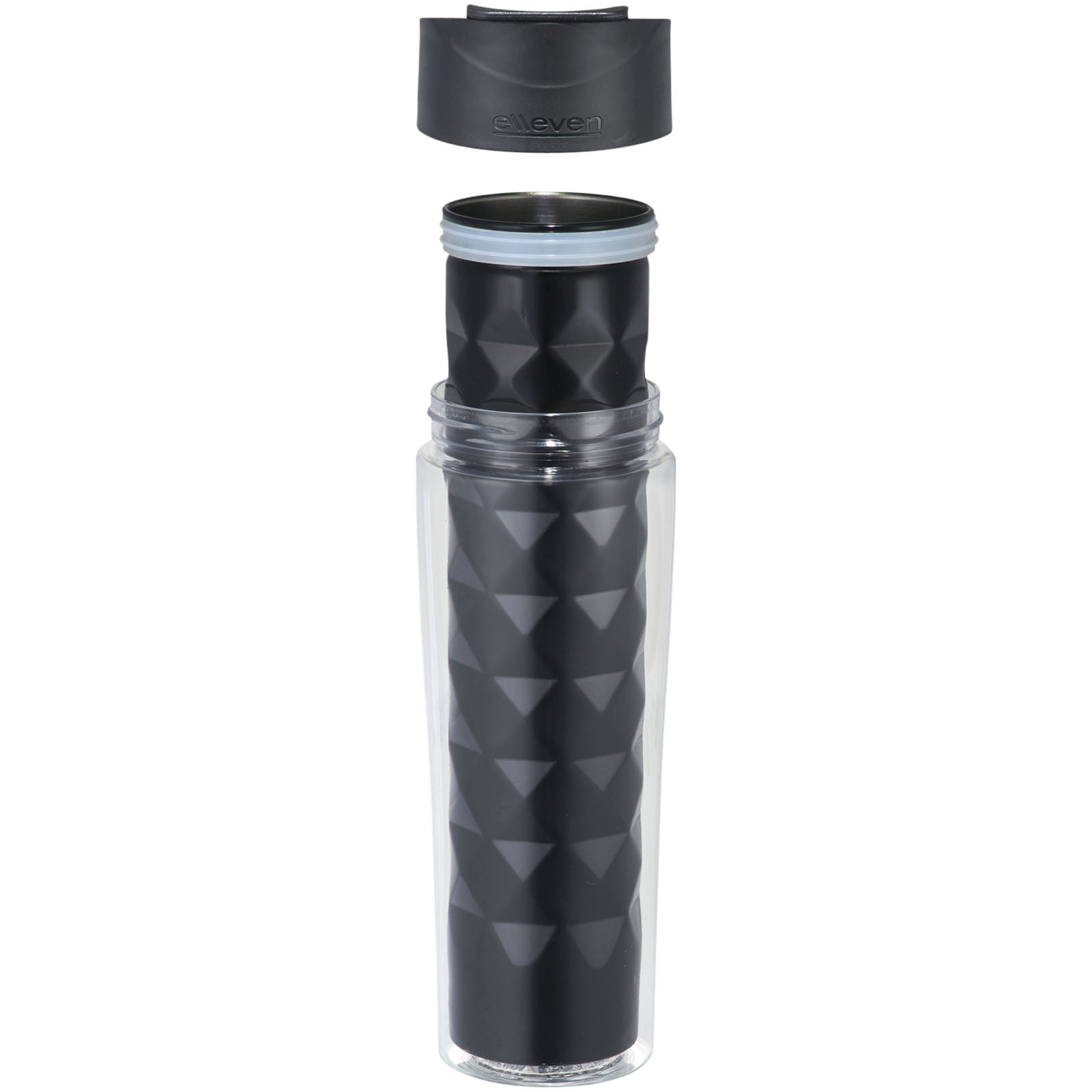 Termohrnček Traver 2-v-1. Dvojplášťová vákuová termoska z nerezovej ocele s odklápacou nápojové krytkou (flip-top) a premysleným geometrickým dizajnom. Dodávané v darčekovej kazete Elleven. Nerezová oceľ. Nekvapkajúci flase. Objem 475 ml. BPA-free Eastman Tritan ™.