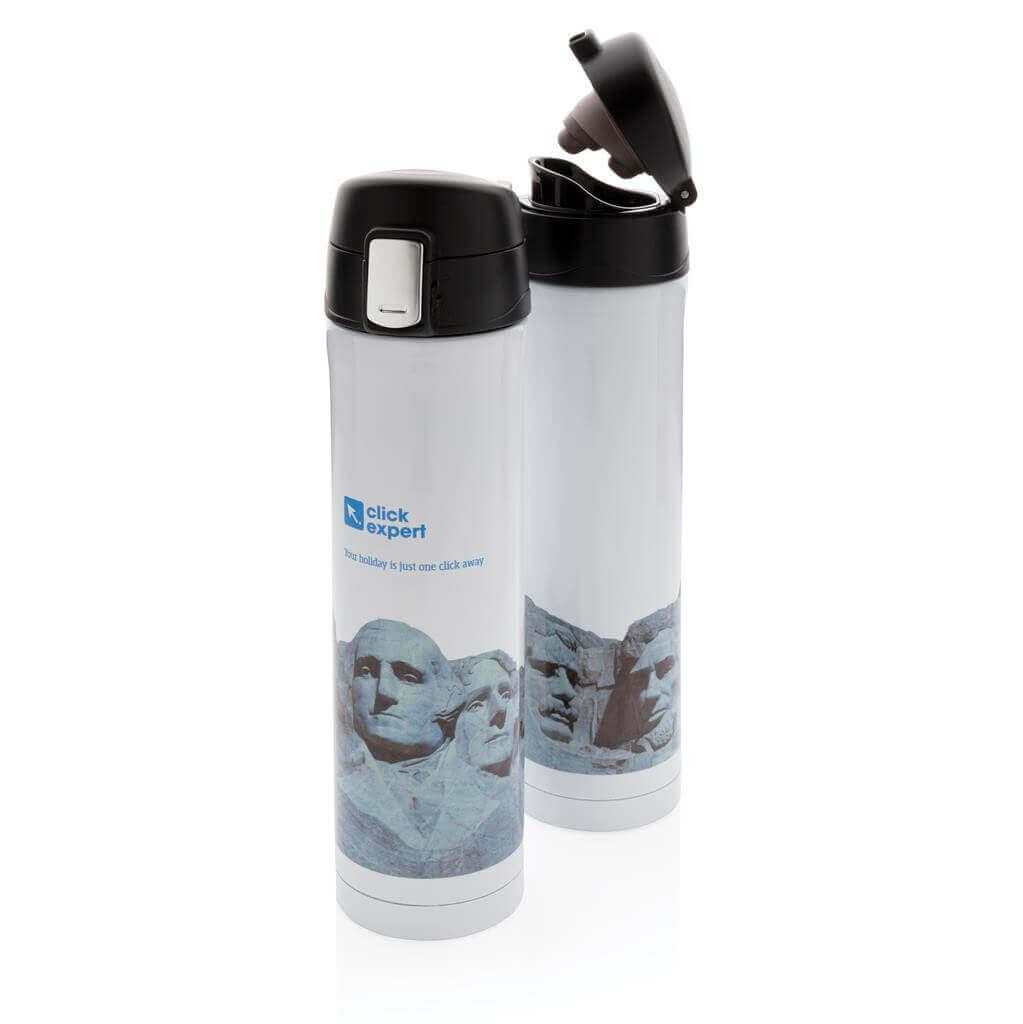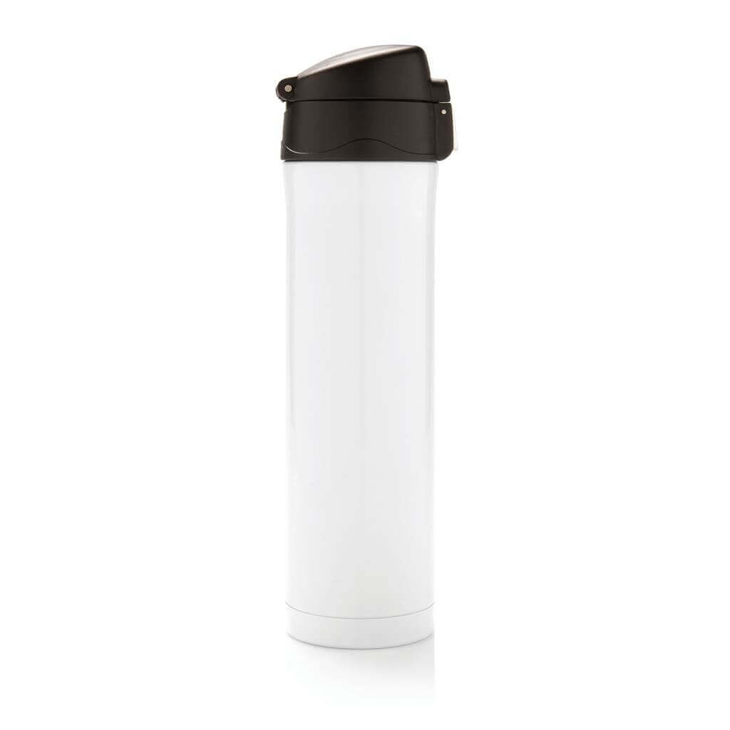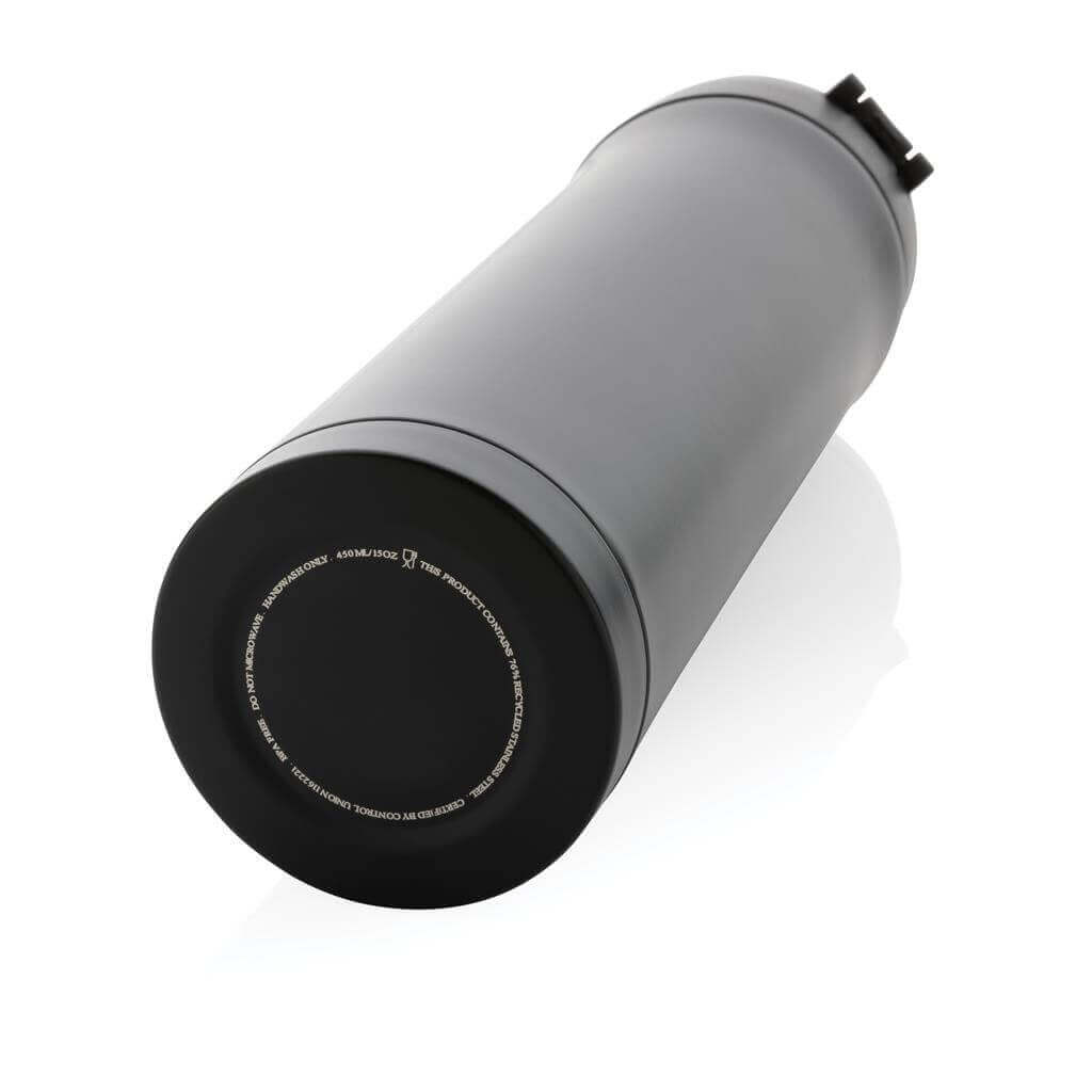 Termoska Easy lock s jedinečným designom. Uzáver je možné jednoducho ovládať jednou rukou a uzamknúť pre zabránenie vyliatiu tekutiny. Uzáver je zároveň navrhnutý pre ľahké ručné umývanie aj umývanie v umývačke riadu. Nápoje uchová až 5h teplé a 15h studené. Priemer zodpovedá väčšine držiakom v automobiloch. Vyrobená z RCS recyklovanej ocele. RCS (Recycled Claim Standard) je globálny štandard, ktorý umožňuje overiť použitie recyklovaného materiálu v produkte naprieč celým dodávateľským reťazcom. Celkový podiel recyklátu podľa váhy produktu: 76 %. Objem: 450 ml. Balené v FSC® kraftovej darčekovej krabičke.