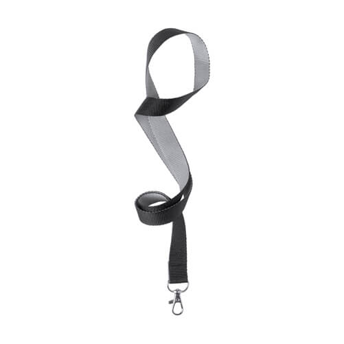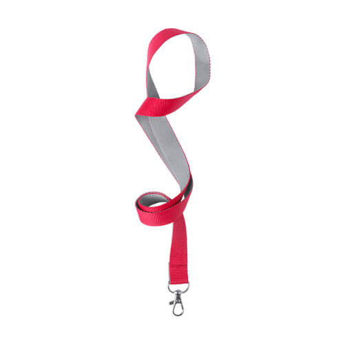 Dvojfarebný polyesterový lanyard s kovovou karabínkou.
