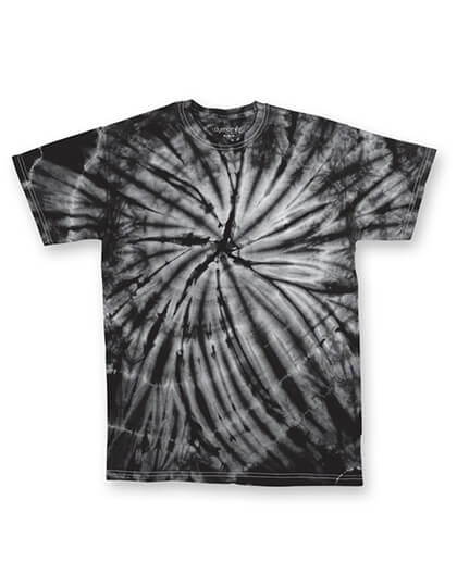 Tričko zdobené farebným batikovaným vírom. Každá batika je ručne vyrobená, takže žiadne dva motívy nie sú rovnaké. Dvojité prešívanie pri krku a na dolnom leme. Predzrážané