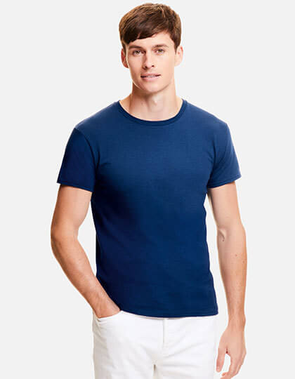 100% česaná kruhovo kvalitná bavlna. Mäkký pocit ruky. Štíhly strih. Okrúhly výstrih s 1x1 rebrom. Samolepiaca páska na zadnej krk. Nový odtrhnuteľný štítok na zadnej strane krku