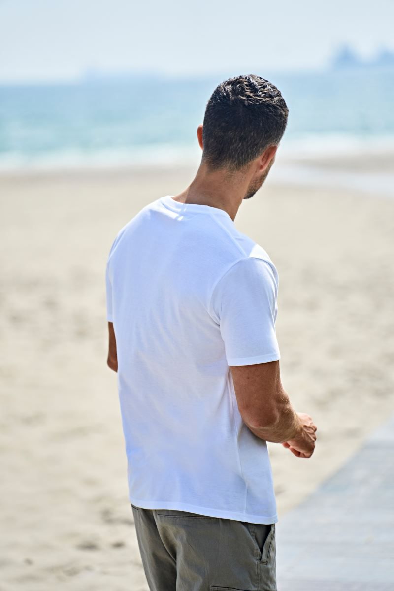 150g/m², 100% dvakrát predzrazená, česaná prstencová certifikovaná organická bavlna, silikónové pranie, enzymaticky prané, single jersey.