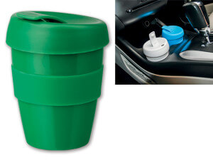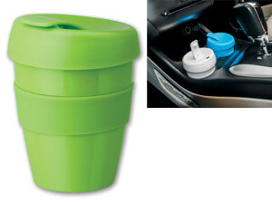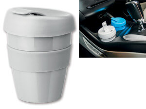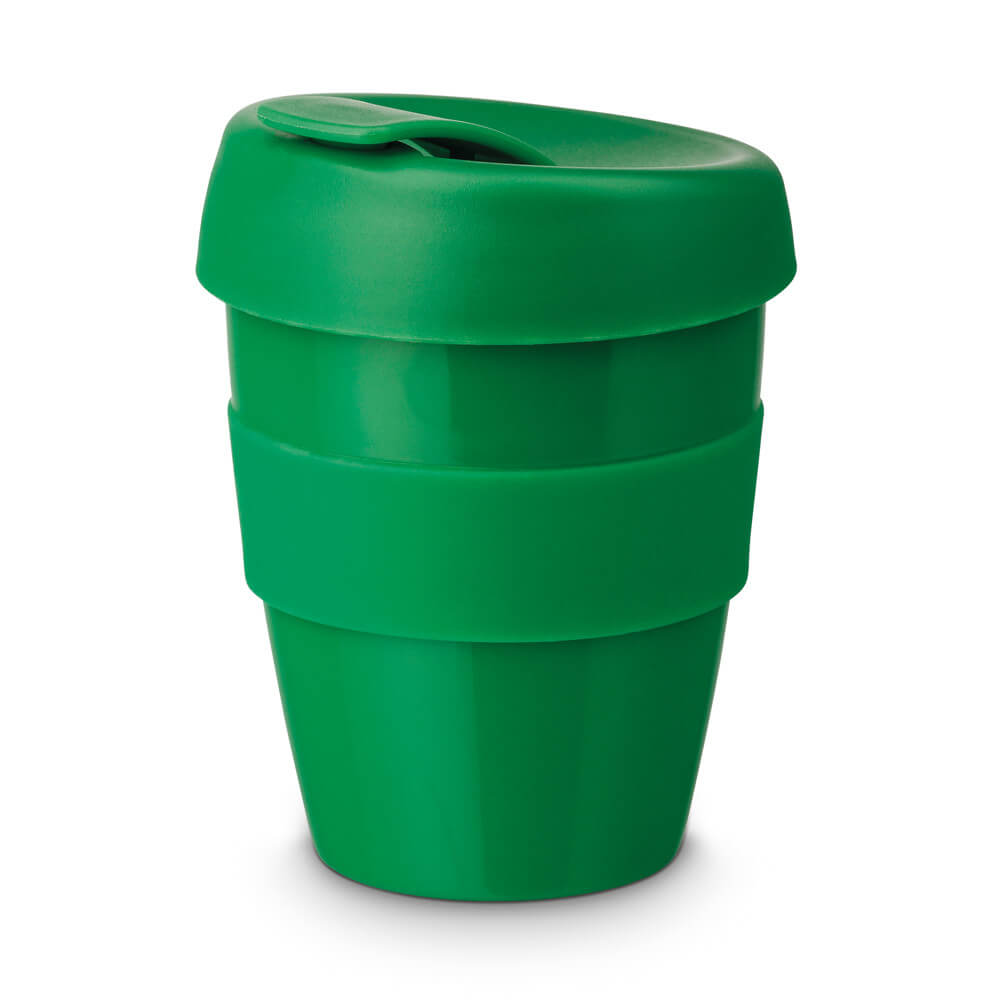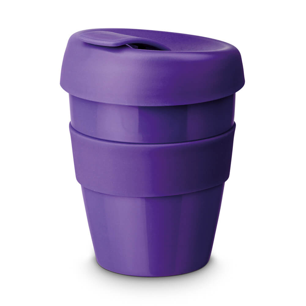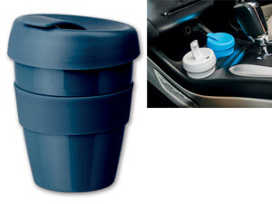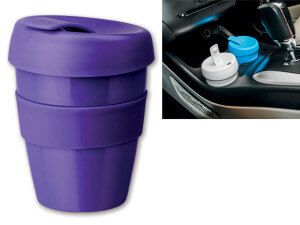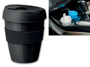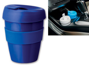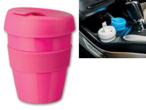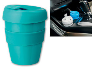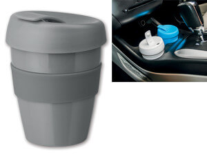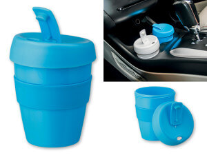 Plastový pohárik s viečkom a silikónovým krúžkom.