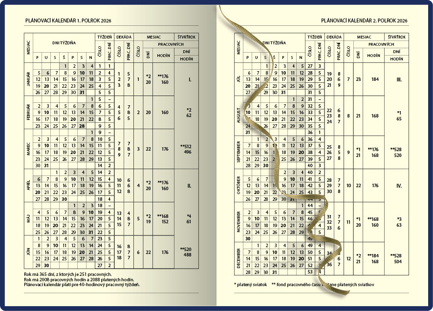 Obľúbený týždenný diár s prehľadným kalendáriom na celý týždeň. Diár je v pevnej väzbe s prednou penou so slovenským kalendáriom. Jednoduchý dizajn dopĺňa strieborná razba roku.