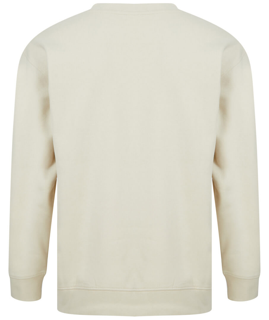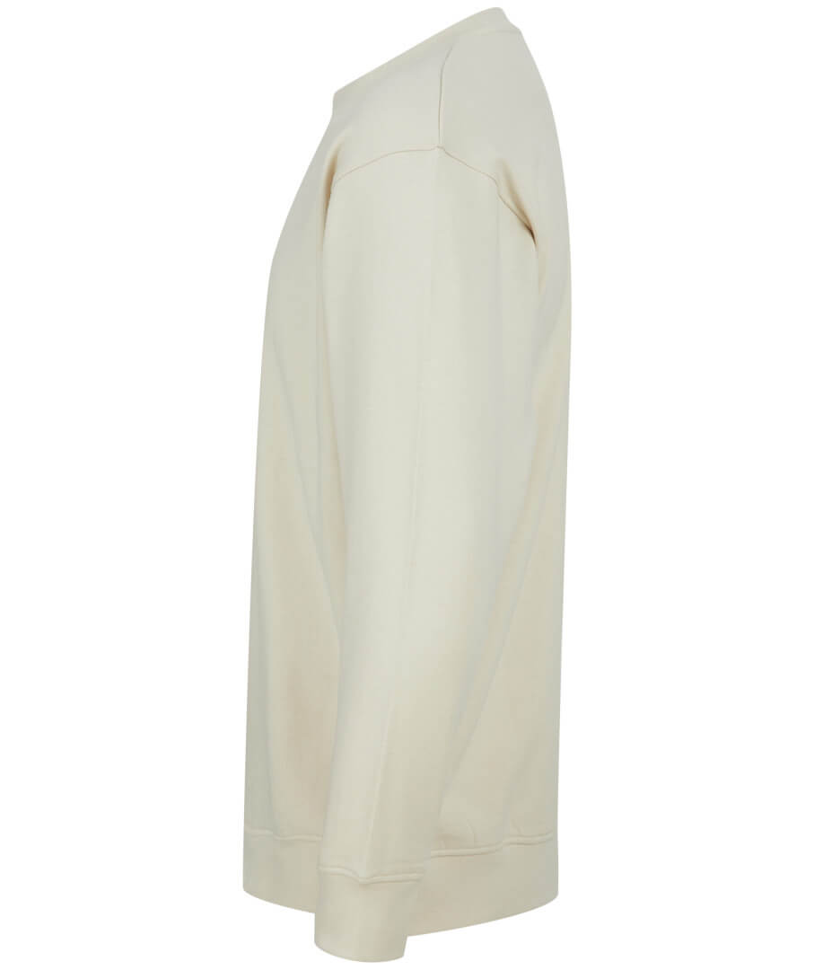 Unisex mikina voľného strihu | Obnovená bavlna/ recyklovaný polyester | Flís s česanou rubovou stranou | Vsadené rukávy, spadnuté ramená | Predĺžený lem - zaoblený krátky predný diel, dlhý zadný diel | Rebrovaný lem na manžetách a okrúhlom výstrihu | Jednoduchá džersejová páska za krkom a na lište | Tónované prešívanie | Bez štítku | Recyklovateľné tašky s možnosťou opätovného uzavretia - vyrobené zo 100% recyklovaného plastu